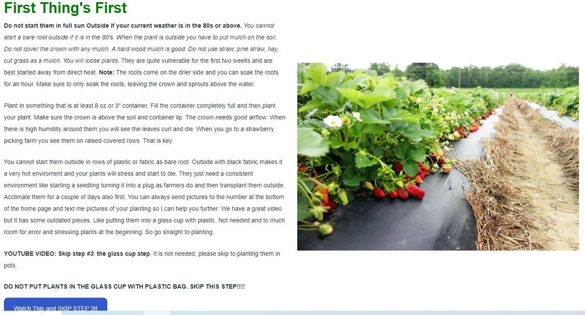 - Q: What condition will the plants arrive in? A: The plants are shipped as dormant bare root strawberry plants, meaning they will arrive without soil and foliage. This is the ideal state for planting and ensures a healthy start.