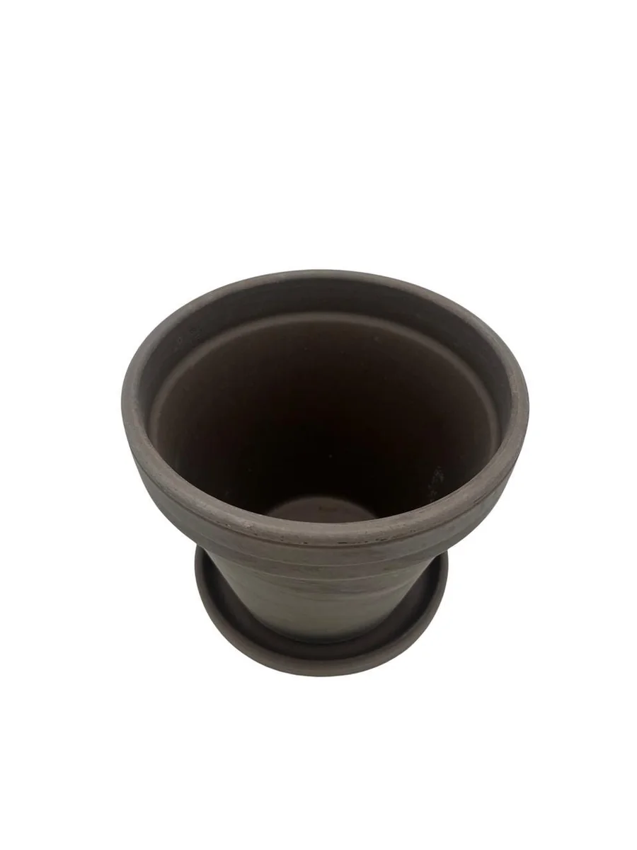 Q: Are these pots glazed on the inside or outside? A: No, these basalt clay pots are unglazed, which allows the natural porosity of the terracotta to benefit plant roots by promoting air circulation and allowing excess moisture to evaporate.