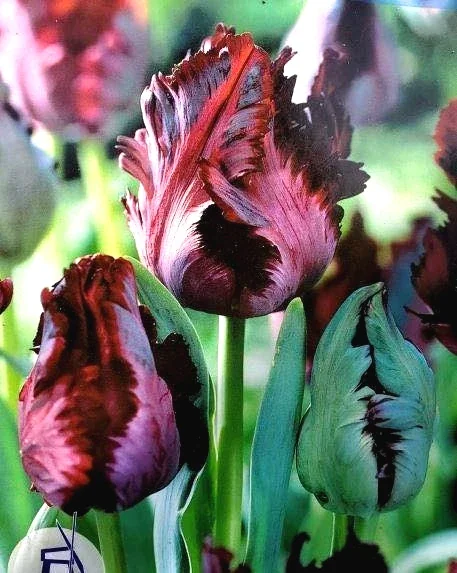- Q: How big do these black parrot tulip bulbs get? A: Once mature, the black parrot tulip flowers typically reach a height of 18-24 inches (45-60 cm), with individual blooms measuring 4-6 inches across. They form a lovely clumping habit in the garden.