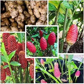 - Unique Ornamental Value: The distinctive red, pinecone-like inflorescences provide an exotic and captivating visual element, making the red pinecone ginger a standout in any garden or container display.