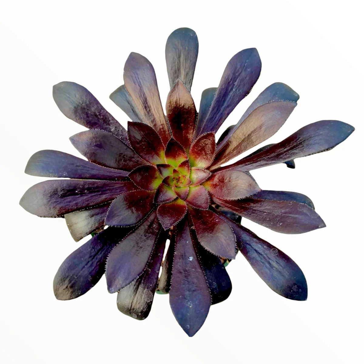 As a ‘winter type’ succulent, the Aeonium Black Rose succulent plant thrives in cooler seasons and enters a period of dormancy during the hot summer months. It’s known for its ability to absorb more heat than typical succulents due to its dark pigmentation, which can cause the leaves to soften if exposed to excessive direct sunlight. The natural process of bottom leaves withering in summer dormancy is a normal metabolic function for this plant. Its distinctive color and growth habit make it a fascinating addition for both novice and experienced succulent enthusiasts looking for something beyond the ordinary. The ease of care combined with its dramatic appearance ensures that the Aeonium Black Rose succulent plant remains a popular choice for indoor gardening.