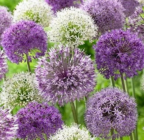 This offering includes high-quality allium purple blend bulbs, ready for planting. These bulbs are selected to produce impressive flower heads, typically reaching 4-6 inches in diameter. The mature plants will stand tall at an average height of 28-32 inches, with strong, upright stems that elegantly support the large flower spheres. These bulbs are shipped in their dormant state, ensuring they are ready for planting upon arrival. The optimal time for planting these purple allium bulbs is in the fall, allowing them to establish roots before winter and emerge with vibrant blooms in late spring. With proper care, these alliums will establish quickly and provide a stunning display for many years.