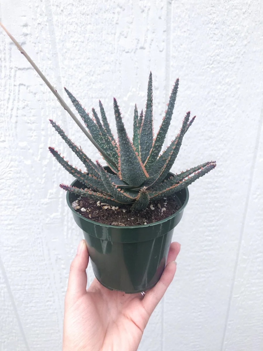 This offering is for one healthy Aloe Purple Haze succulent, provided as a live plant in a 4 inch aloe plant nursery pot. At maturity, this striking aloe hybrid typically reaches a compact size of up to 6 inches in both height and width, making it an ideal choice for windowsills, desks, or as an appealing component in mixed succulent arrangements. Its growth rate is moderate, allowing you to enjoy its beauty without it quickly outgrowing its space. The plant will be shipped in its nursery pot with soil, ensuring minimal transplant shock and providing a strong start in its new home. Expect the plant to arrive well-established, with its unique foliage already beginning to show hints of the characteristic ‘Purple Haze’ coloration.