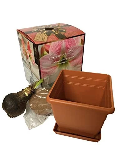 - Complete Growing Solution: This kit includes a premium 26/28 cm Amaryllis Apple Blossom bulb kit, a plastic pot, a matching saucer, and the necessary growing medium, providing a hassle-free planting experience. Everything you need is right here to start your indoor garden.