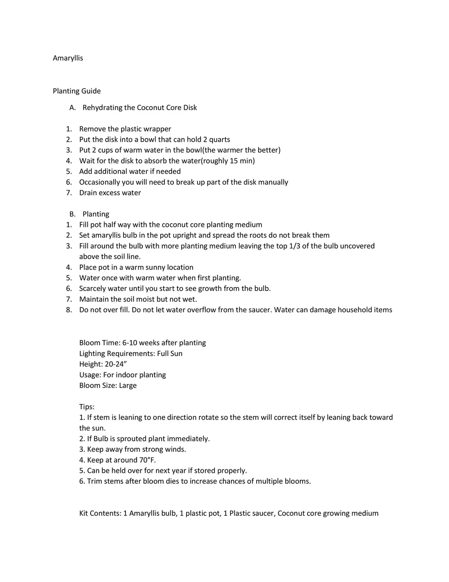 - Q: When is the best time to plant this Amaryllis forcing kit? A: For indoor forcing, you can plant the bulb anytime from late fall to early spring. This allows you to time your blooms for specific events or simply to enjoy fresh flowers during the winter months. To ensure you successfully grow Amaryllis, follow the planting instructions carefully.