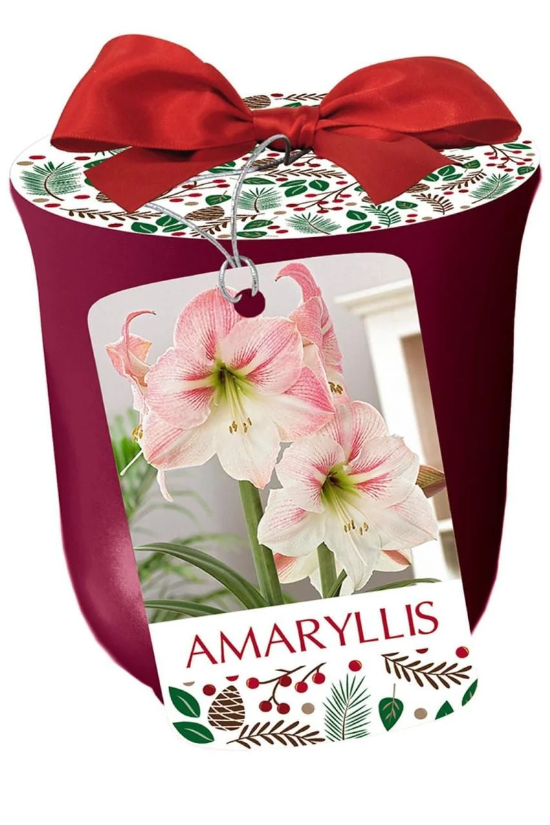 - Elegant Bordeaux Planter: The included deep red (Bordeaux) ceramic planter not only provides the perfect home for your Amaryllis but also adds a sophisticated decorative element to your living space. This planter complements the delicate beauty of the Apple Blossom Amaryllis perfectly.