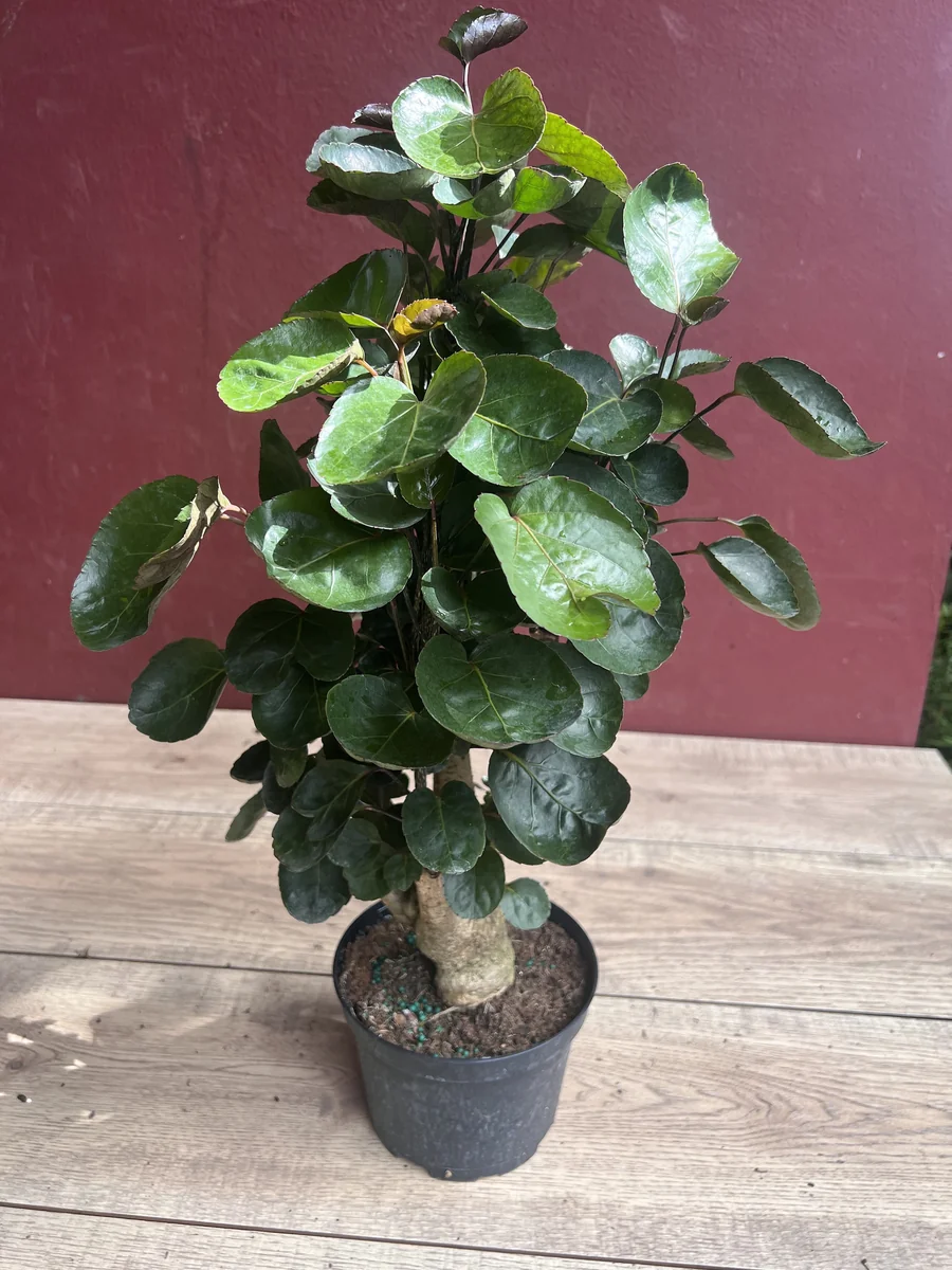 Introduce a distinctive and elegant touch to your indoor plant collection with the Aralia Fabian Stump live plant. This captivating houseplant, also known by its botanical name Polyscias scutellaria, stands out with its unique aesthetic featuring a stout, tree-like trunk and glossy, round green leaves often adorned with a subtle purplish underside. Originating from the lush islands of the Pacific Ocean, including New Guinea, the Aralia Fabian Stump has been thoughtfully cultivated to thrive as an indoor specimen, slowly reaching a maximum height of approximately 5 feet. Its robust appearance and intricate foliage make it a focal point in any room. The Aralia Fabian Stump live plant is not just a decorative item; it’s a living piece of art that brings natural serenity and a touch of exotic charm to your home or office environment.
