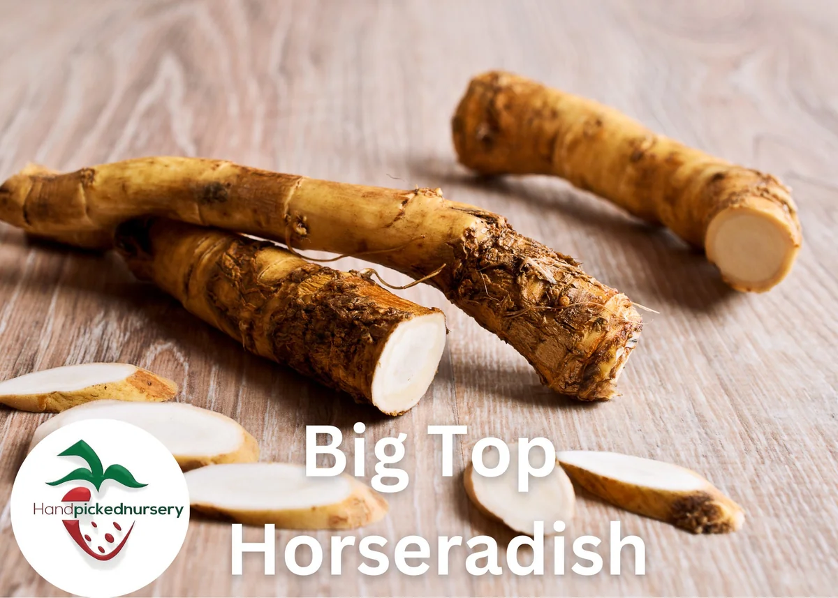 - Q: Can I use this horseradish for cooking? A: Absolutely! The Big Top Horseradish root is specifically cultivated for its robust and spicy flavor, making it perfect for grating and using in sauces, condiments, and various culinary dishes.