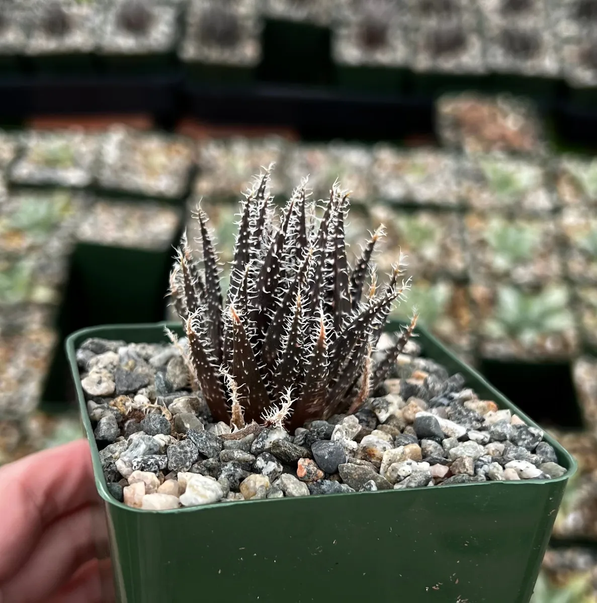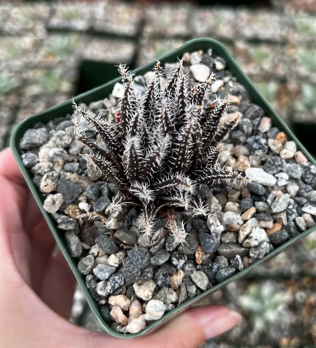 - Compact Size: Growing to a modest size, the black haworthia aloe haworthioides is ideal for small spaces, windowsills, desks, or as part of a terrarium, fitting seamlessly into various settings.