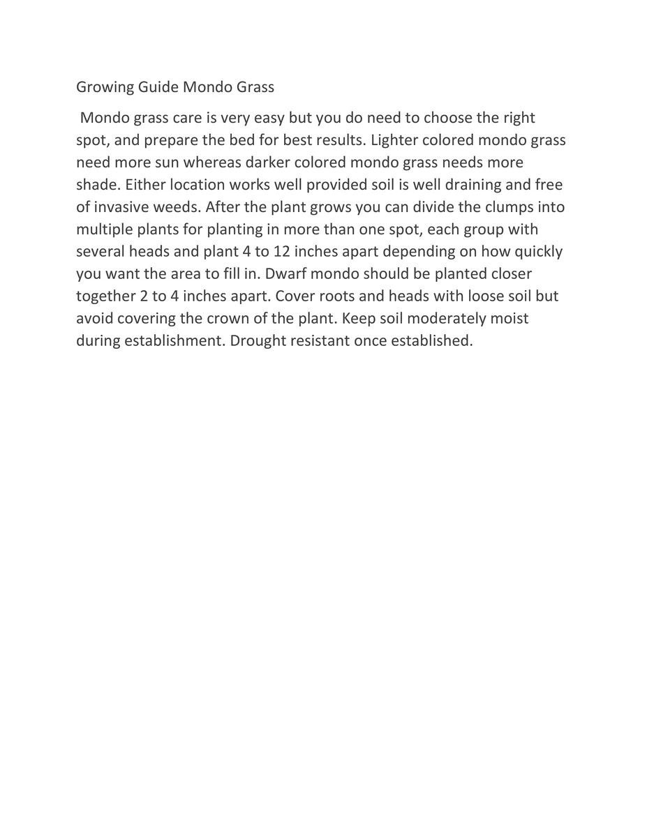 - Q: Is this plant easy to care for? A: Yes, black mondo grass care is relatively easy. Once established, it is low-maintenance, drought-tolerant, and generally resistant to pests and diseases, making it suitable for gardeners of all experience levels.