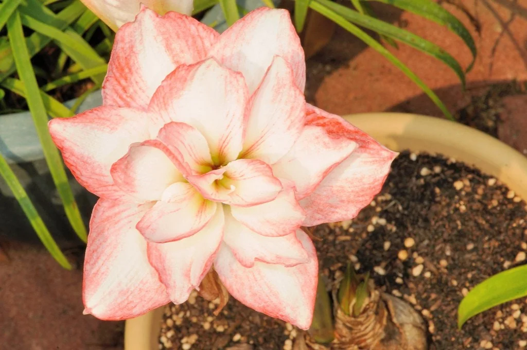- Stunning Double Blooms: Enjoy large, fully double white flowers with captivating pink and red airbrushing, creating a dramatic and elegant display that stands out. This red and white amaryllis offers a truly unique color combination, making your floral arrangements pop.
