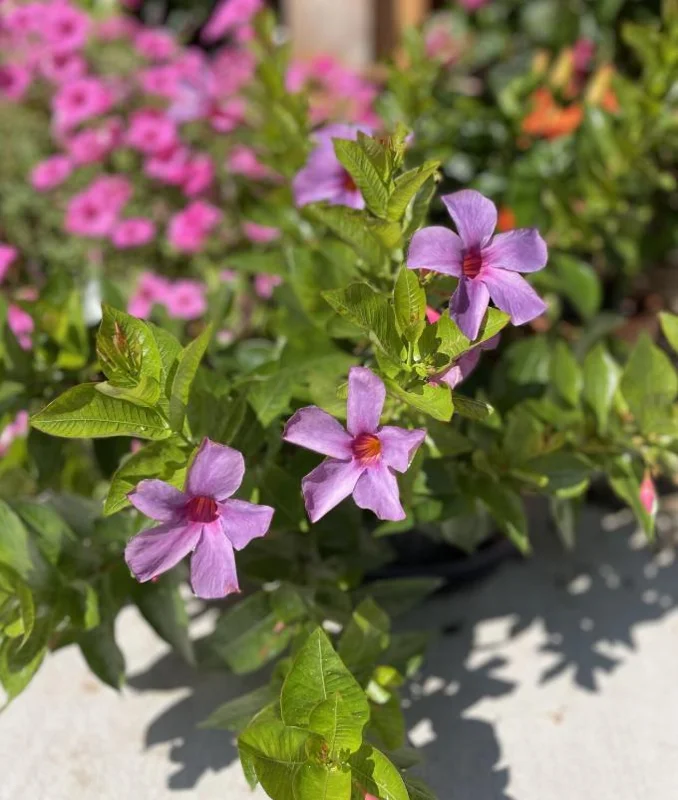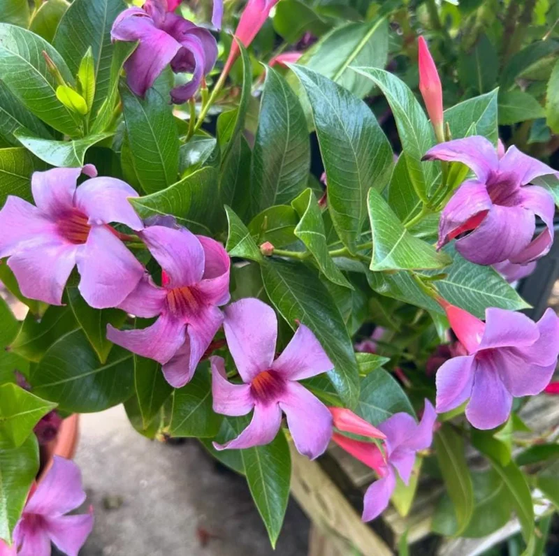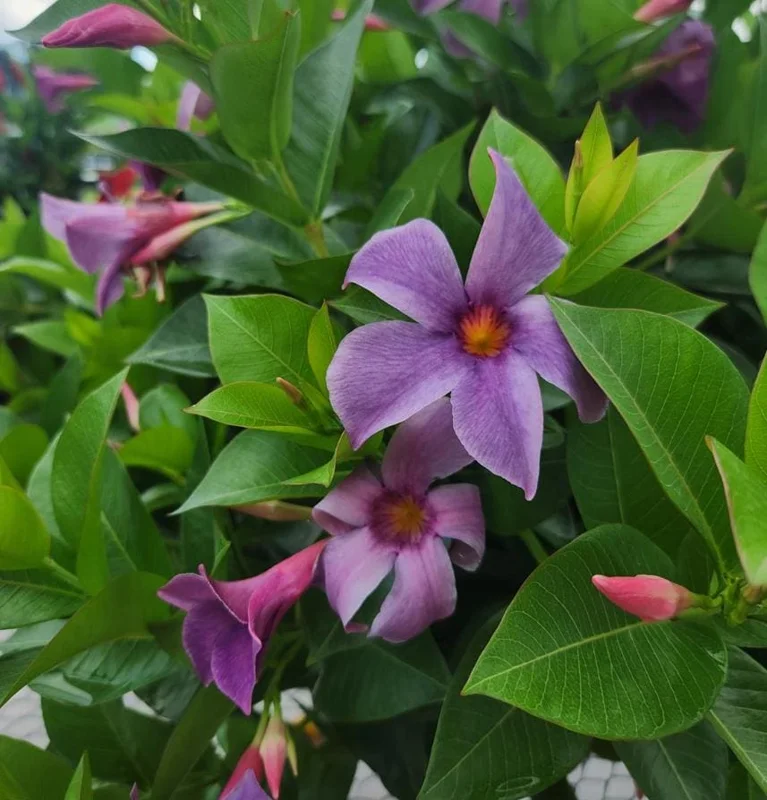 The Mandevilla is not just a pretty face; it’s a resilient and adaptable plant that can be grown in various settings, from containers to garden beds. Its natural climbing habit makes it perfect for vertical gardening, while its ability to cascade also allows it to shine in hanging baskets or as ground cover. This particular variety, with its striking blue flowers, offers a unique alternative to more common colors, ensuring your garden stands out. Experience the joy of growing a plant that combines dramatic beauty with relative ease of care.