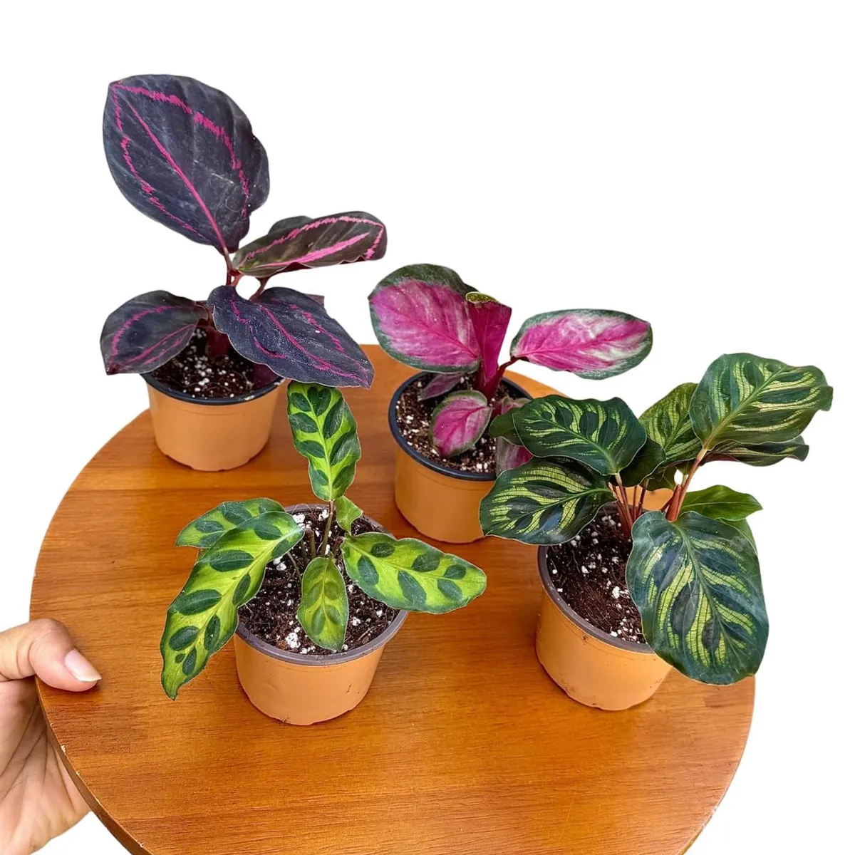 Bring variety and color into your home with this Calathea Assorted Starter Plant set. Known for their dramatic leaf patterns and stunning shades of green, cream, and purple, Calatheas make an eye-catching addition to any plant lover’s collection.