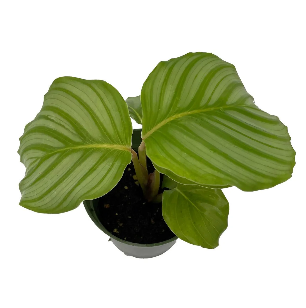 This Calathea orbifolia live plant is provided in a convenient 4 inch Pot, making it an ideal size for immediate display upon arrival. At this stage, the plant typically stands about 6-10 inches tall from the base of the pot, with its striking, rounded leaves reaching up to 4-6 inches in width. These measurements are approximate and can vary slightly due to natural plant growth. The plant is shipped as a healthy, established specimen, carefully packaged to ensure a safe journey to your home. As a relatively fast-growing tropical foliage plant, you can expect your Calathea orbifolia to gradually increase in size, with its large, rounded leaves potentially growing up to six inches wide over time, forming a lush, impressive clump. New leaves unfurl from the center of the plant, often appearing in a trumpet-like formation before expanding to their full glory. This plant is a fantastic choice for adding an immediate touch of vibrant greenery and unique texture to your indoor plant collection.