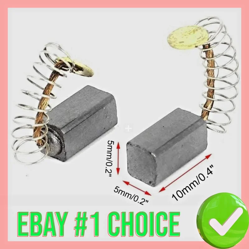 - Q: What size are these brushes? A: Each brush in this pair measures 10mm x 5mm x 5mm. It’s important to verify these dimensions against your power tool’s requirements to ensure compatibility for these 10x5x5mm carbon brushes.