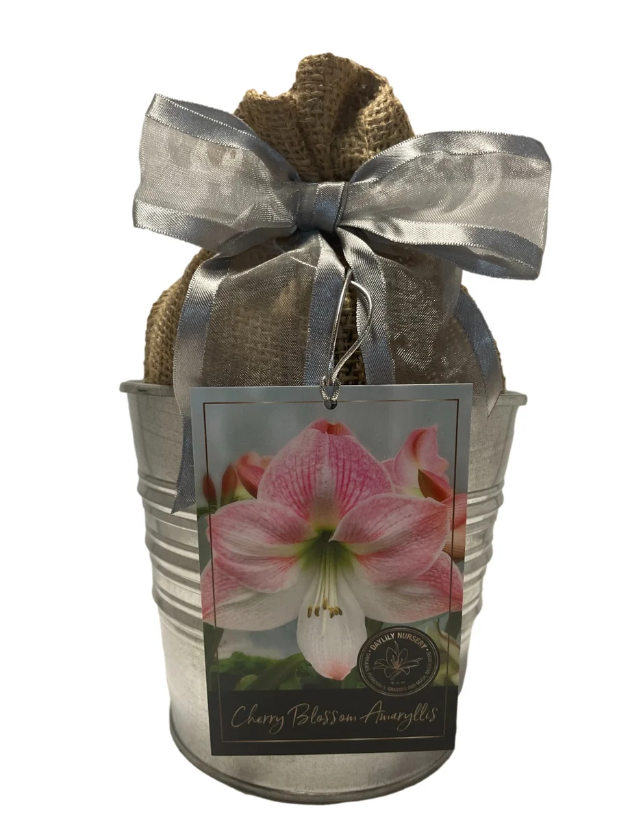 - Q: What condition will the amaryllis bulb arrive in? A: Your ‘Cherry Blossom’ Amaryllis bulb will arrive in dormant, healthy condition, ready for planting. It will be accompanied by the rustic tin pot and growing medium.