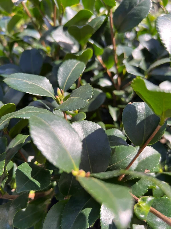 - Evergreen Foliage: This camellia maintains its rich green leaves throughout the year, providing continuous visual interest even when not in bloom. Its evergreen nature ensures your garden retains a vibrant look, offering structure and color during all seasons, especially in winter.