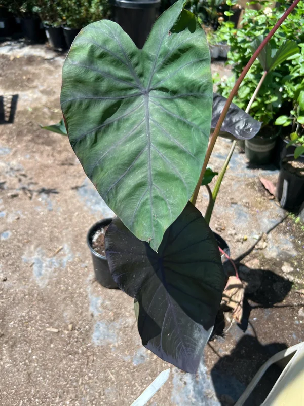 - Dramatic Foliage: Features large, heart-shaped leaves that transition from green to a deep, velvety purple-black, providing a unique and captivating visual appeal that stands out in any plant collection.