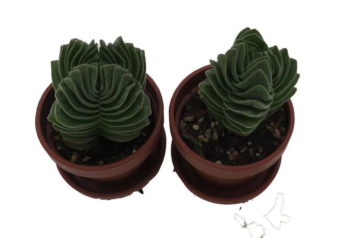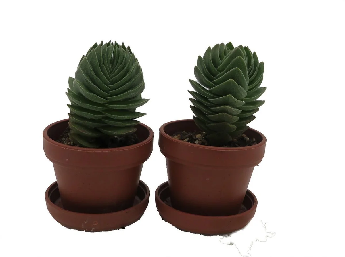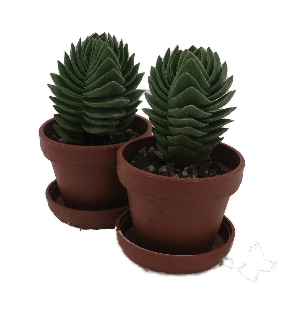 Introduce a truly remarkable specimen to your plant collection with the 2-pack of Buddha’s Temple succulent. This live plant, scientifically known as Crassula pyramidalis, is celebrated for its unique and architectural appearance, often compared to an ancient pagoda or temple. Its tightly stacked, triangular leaves form a distinctive columnar shape, creating a living sculpture that adds an exotic touch to any indoor space. Each plant is carefully cultivated and shipped in a 1-inch pot, ready to be admired. This rare and fascinating succulent is a must-have for enthusiasts seeking an unusual and visually striking addition to their succulent garden or windowsill display.
