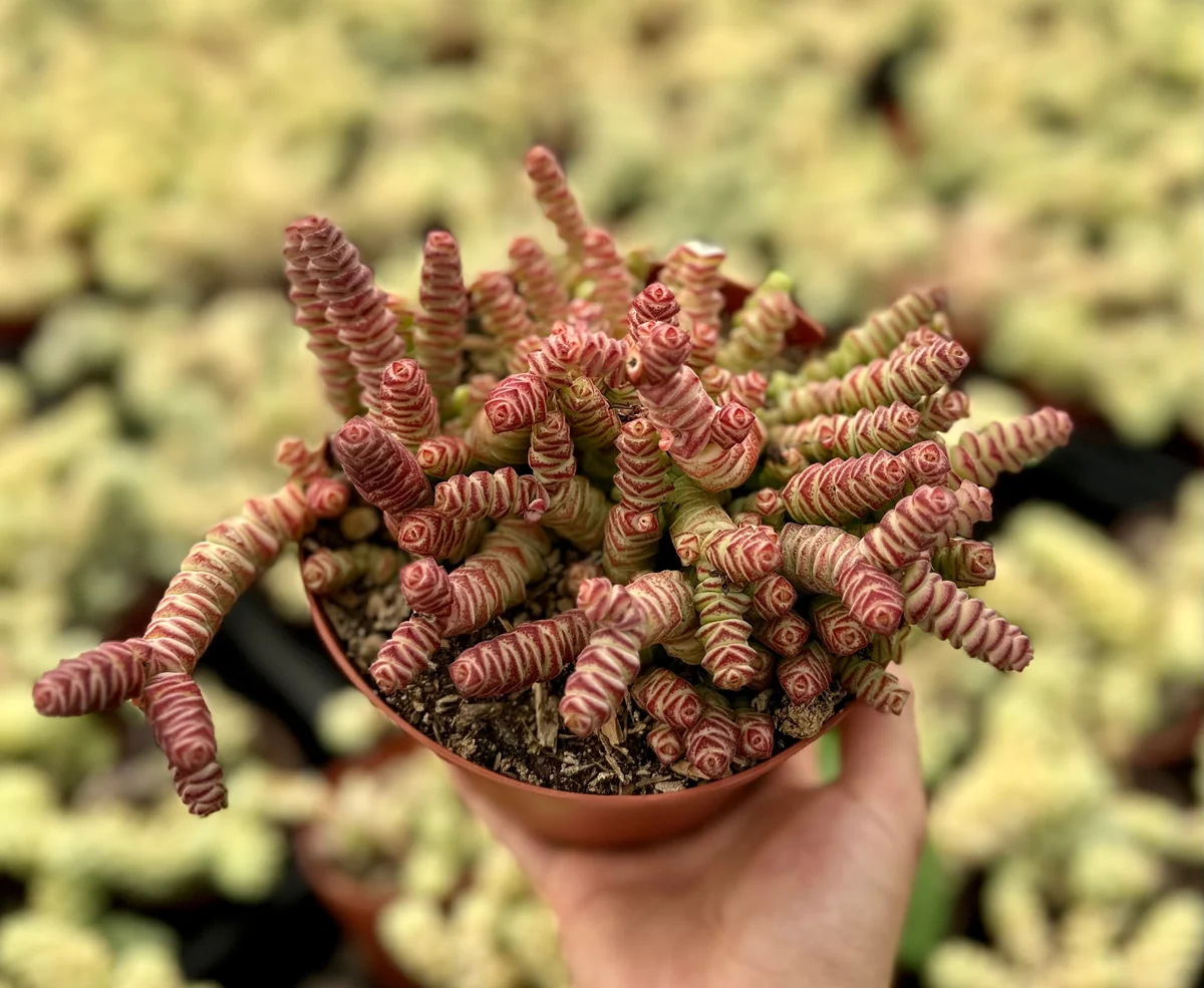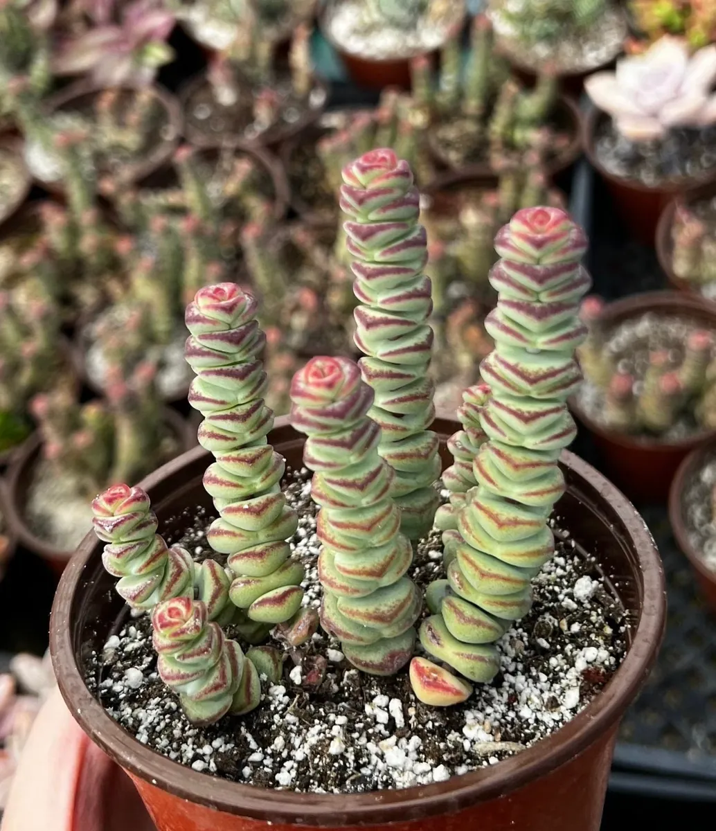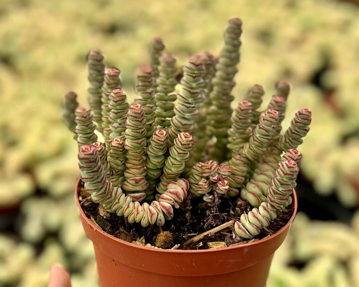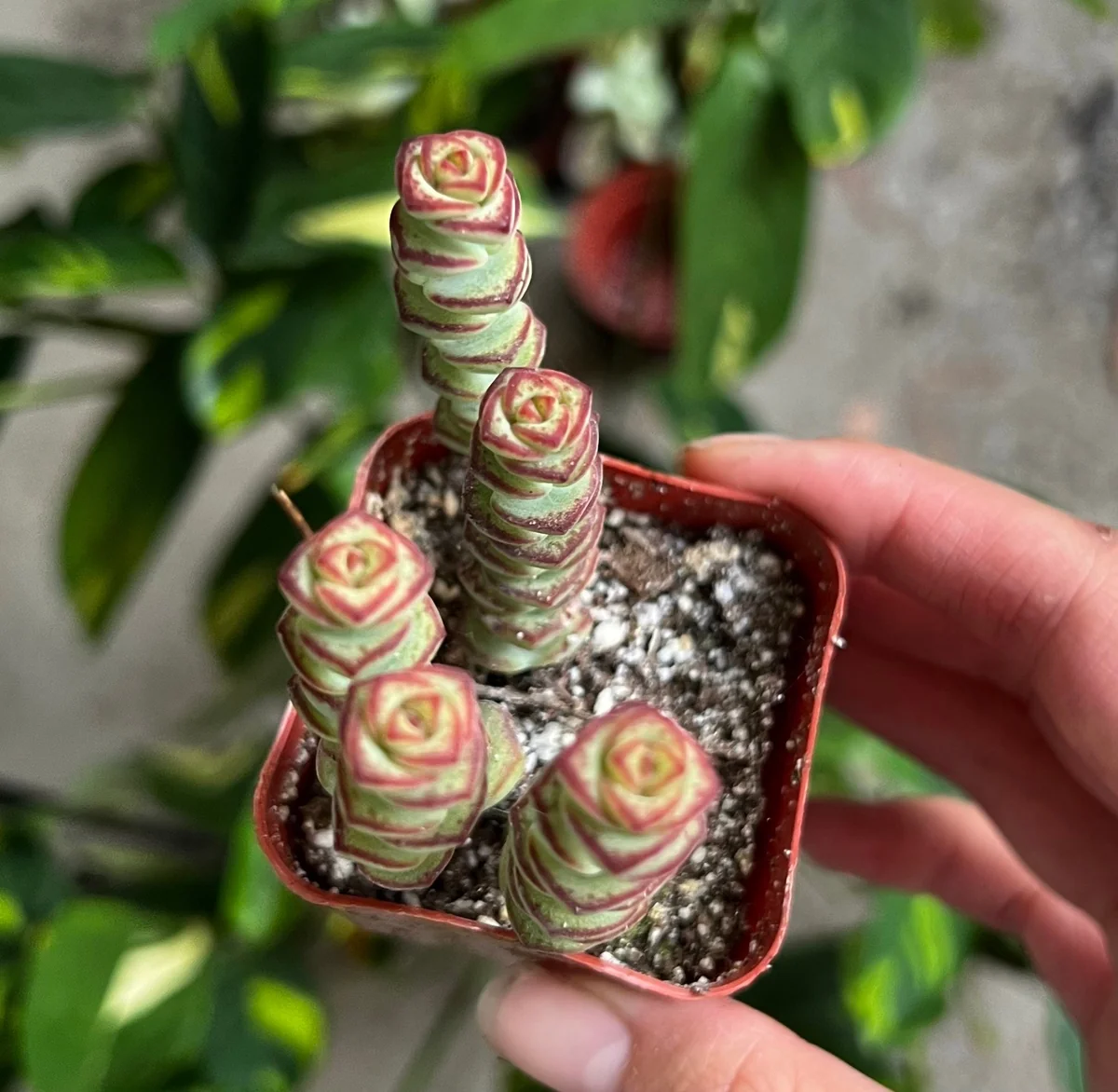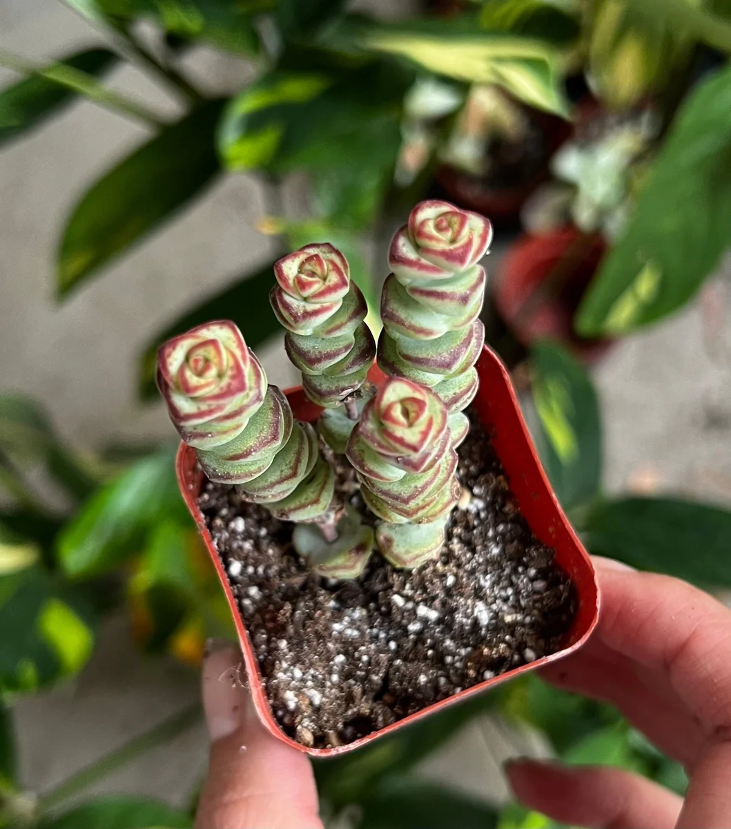 - Drought Tolerant: Like most succulents, the Crassula Rupestris Baby Necklace is highly drought-tolerant, capable of storing water in its leaves. This reduces the need for frequent watering, making it an environmentally friendly choice.