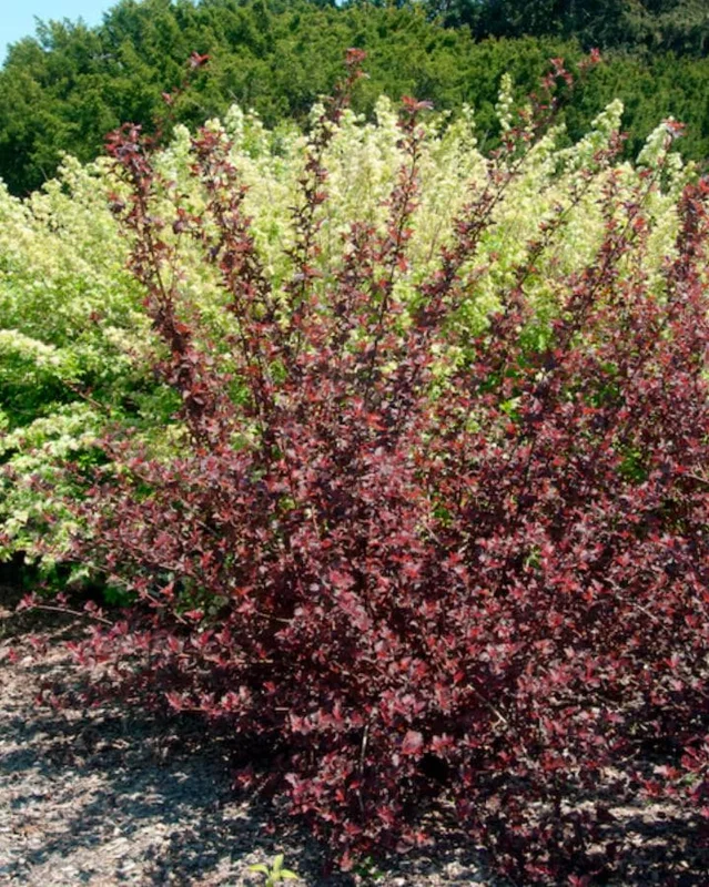 - Stunning Foliage Color: Enjoy deep burgundy-red leaves from spring through fall, providing continuous vibrant color that contrasts beautifully with green plants. This rich hue ensures your garden remains eye-catching throughout the seasons with your new Physocarpus opulifolius Crimson Diablo.