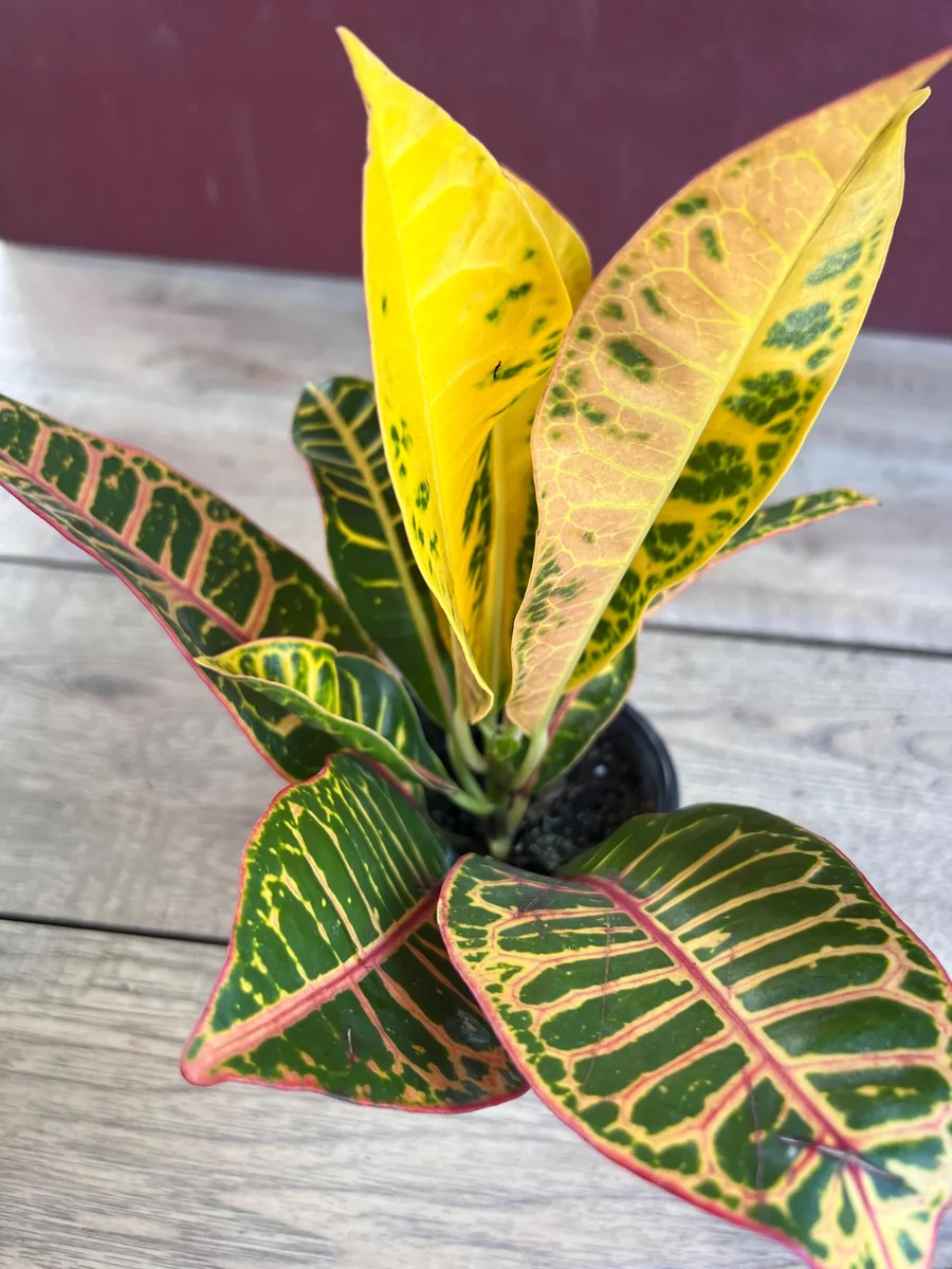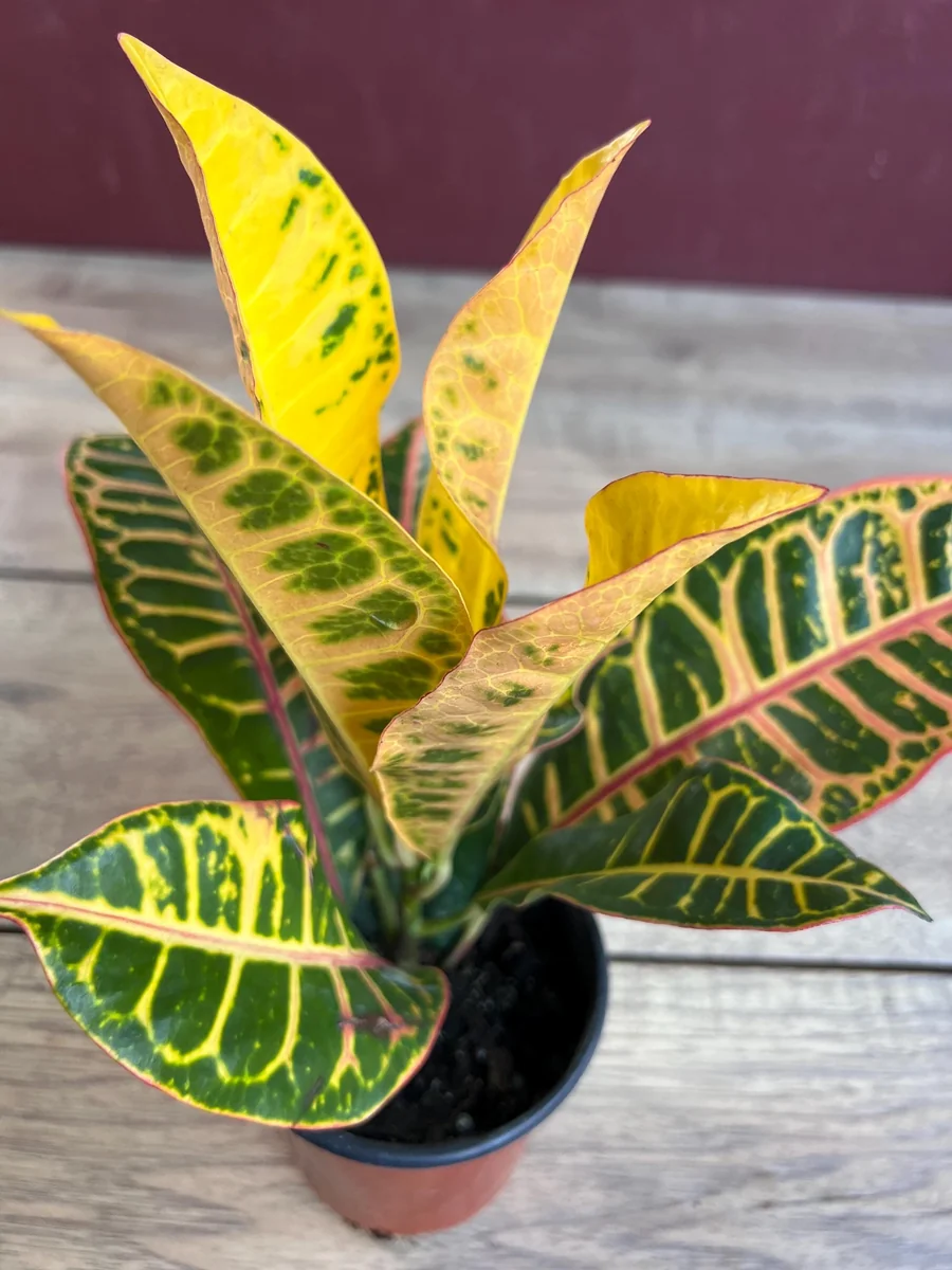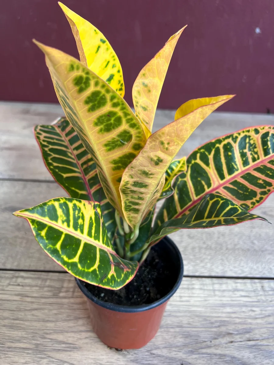 - Unique Variegation: Each Croton Petra plant boasts a unique pattern of stripes and splashes of color, ensuring that no two plants are exactly alike. This individuality adds to its charm and makes it a truly special addition to your collection.