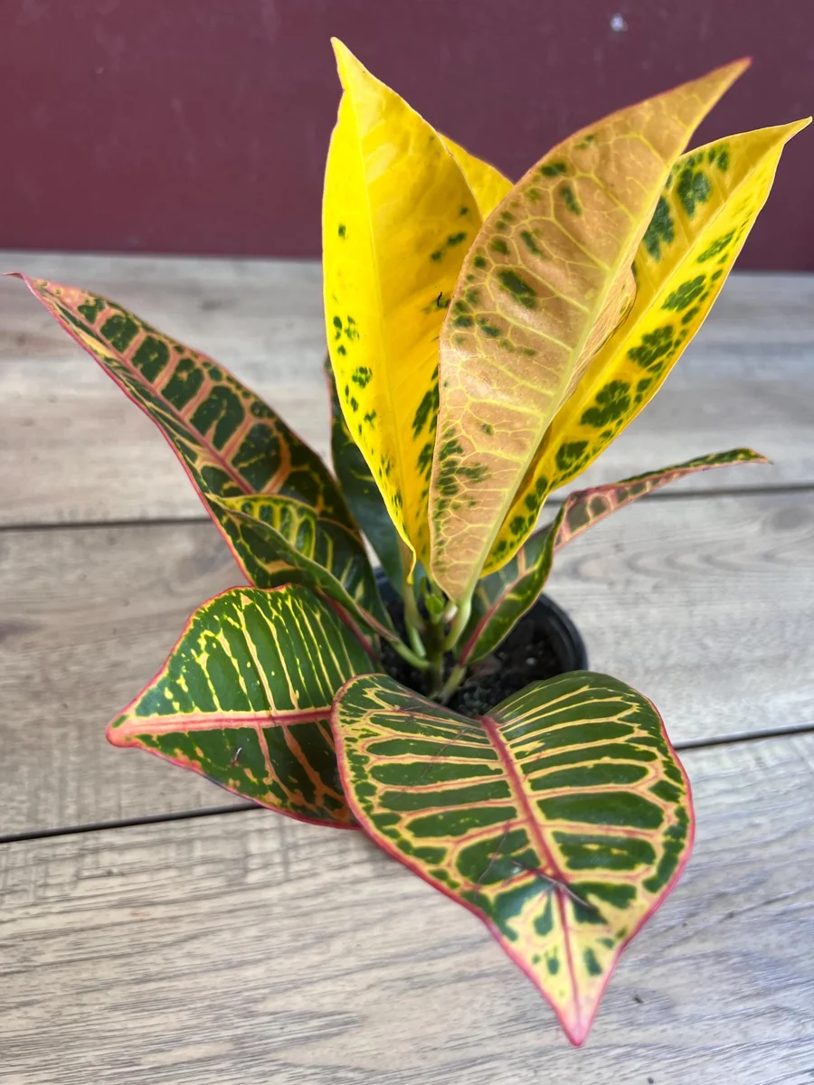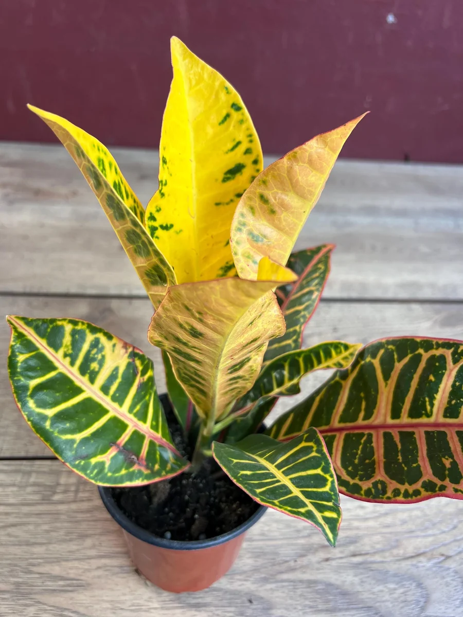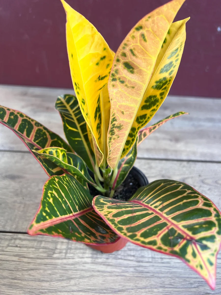 - Unique Variegation: Each Croton Petra plant boasts a unique pattern of stripes and splashes of color, ensuring that no two plants are exactly alike. This individuality adds to its charm and makes it a truly special addition to your collection.