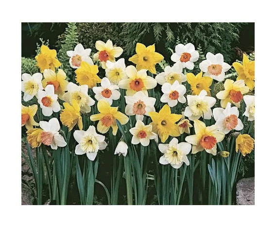 Introduce a burst of vibrant color and classic elegance to your garden with our exquisite daffodil mixture bulbs. This selection features a stunning array of large cupped narcissus, renowned for their traditional daffodil shape with prominent, cup-shaped centers. Each bulb promises to deliver bright, cheery spring colors that are a true herald of the season. Perfect for gardeners looking to create a striking visual impact, these bulbs are easy to grow and will naturalize beautifully, multiplying over the years to provide an ever-increasing display of blooms. Their robust nature makes them a fantastic choice for borders, mass plantings, or even naturalized areas, transforming your landscape into a picturesque spring paradise.