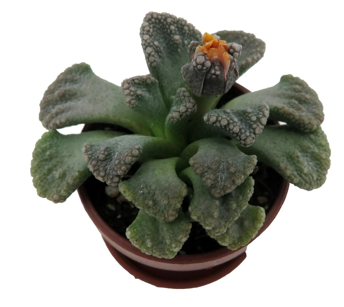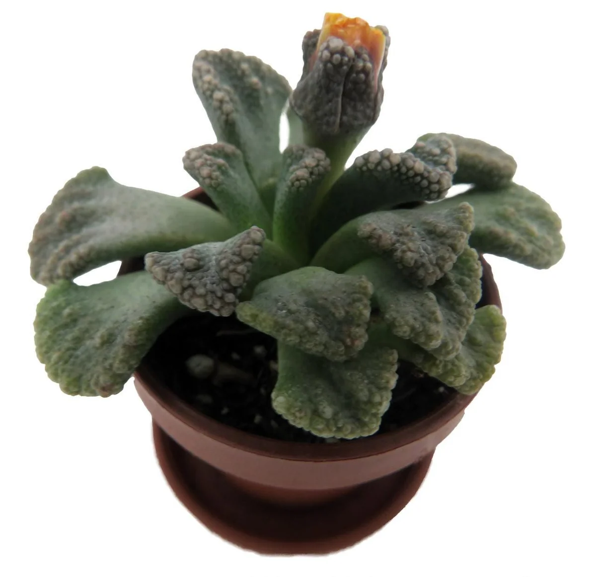 The Dinosaur Foot Living Stone Plant, scientifically known as Titanopsis calcareum, is a fascinating and highly sought-after succulent that brings a touch of prehistoric charm to any collection. Renowned for its distinctive textured leaves that resemble miniature dinosaur feet, this plant is a true conversation starter. Originating from the arid regions of South Africa, Titanopsis calcareum has evolved to thrive in harsh, dry conditions, making it an incredibly resilient and low-maintenance houseplant. This particular offering is a live plant, ready to enhance your indoor garden with its unique form and subtle beauty.