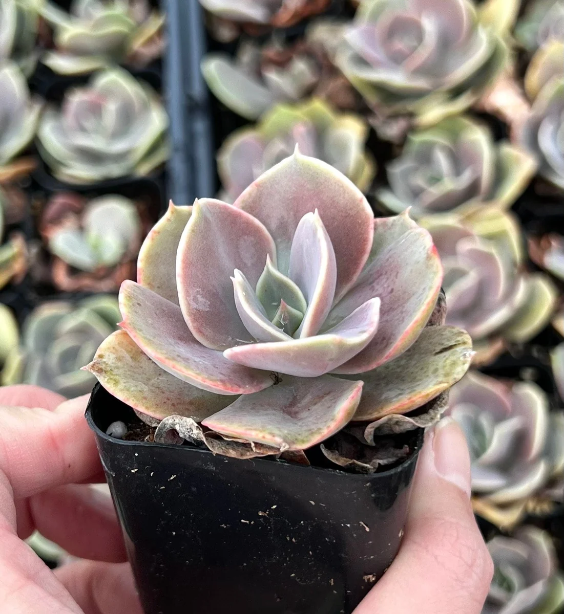 - Stunning Visual Appeal: The powdery lavender-purple rosettes with pinkish edges are incredibly attractive, adding a sophisticated pop of color to any setting. Its distinctive appearance makes it a focal point in succulent arrangements and container gardens.