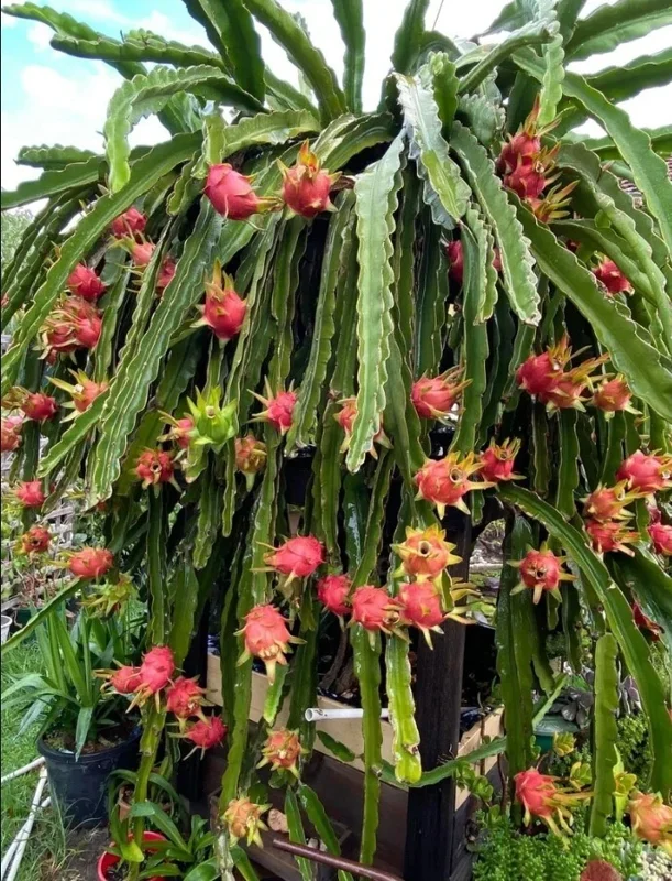 - Q: Is this plant easy to care for? A: Yes, dragon fruit care is considered relatively easy for a fruit-bearing plant. It’s a cactus, so it’s quite resilient, but it does need consistent watering during dry periods and sturdy support for its climbing stems to ensure healthy development and fruit production.