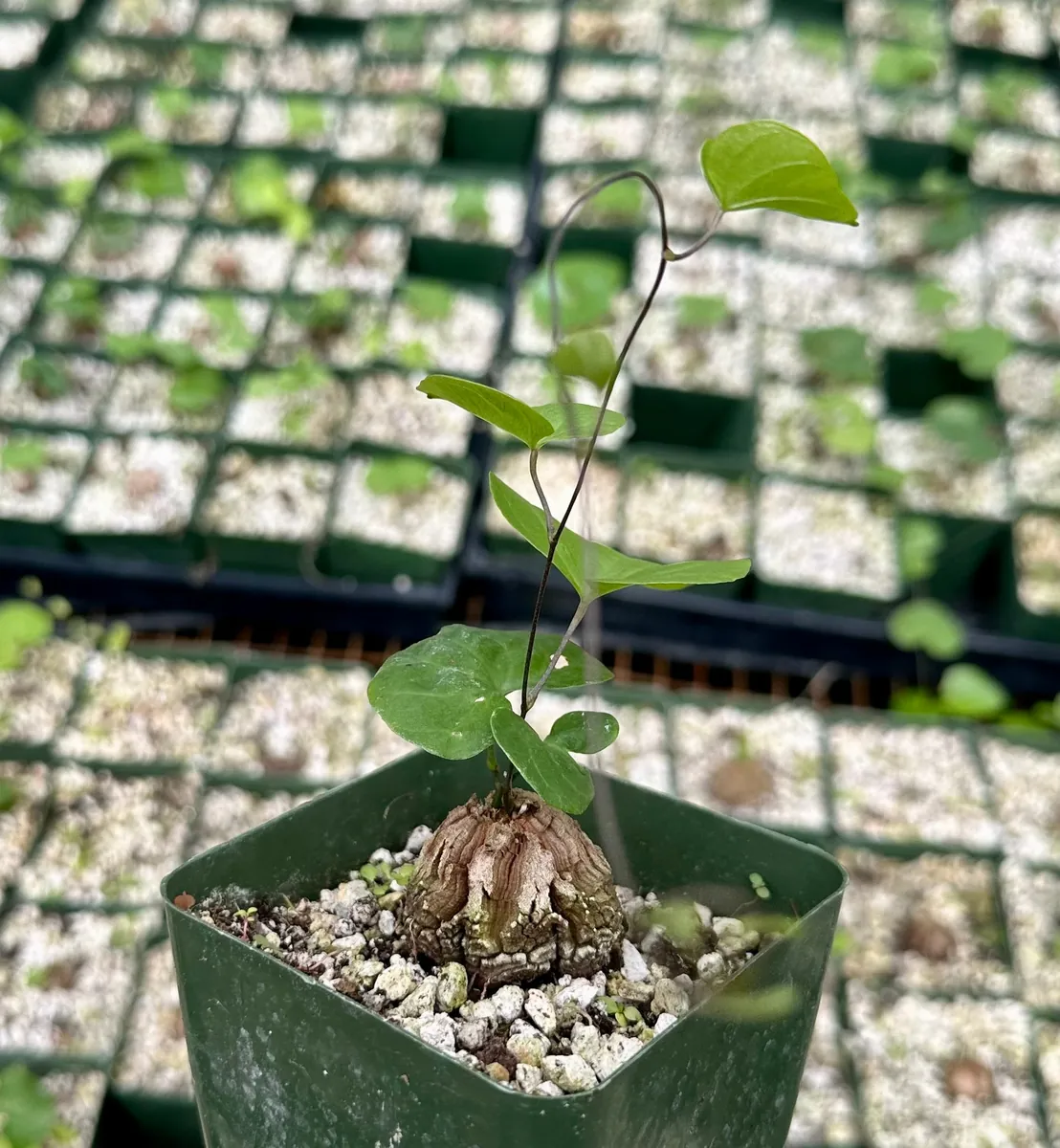 - Unique Growth Habit: Beyond the caudex, the plant produces long, twining stems with delicate heart-shaped leaves, offering an interesting contrast and a dynamic element to its form.