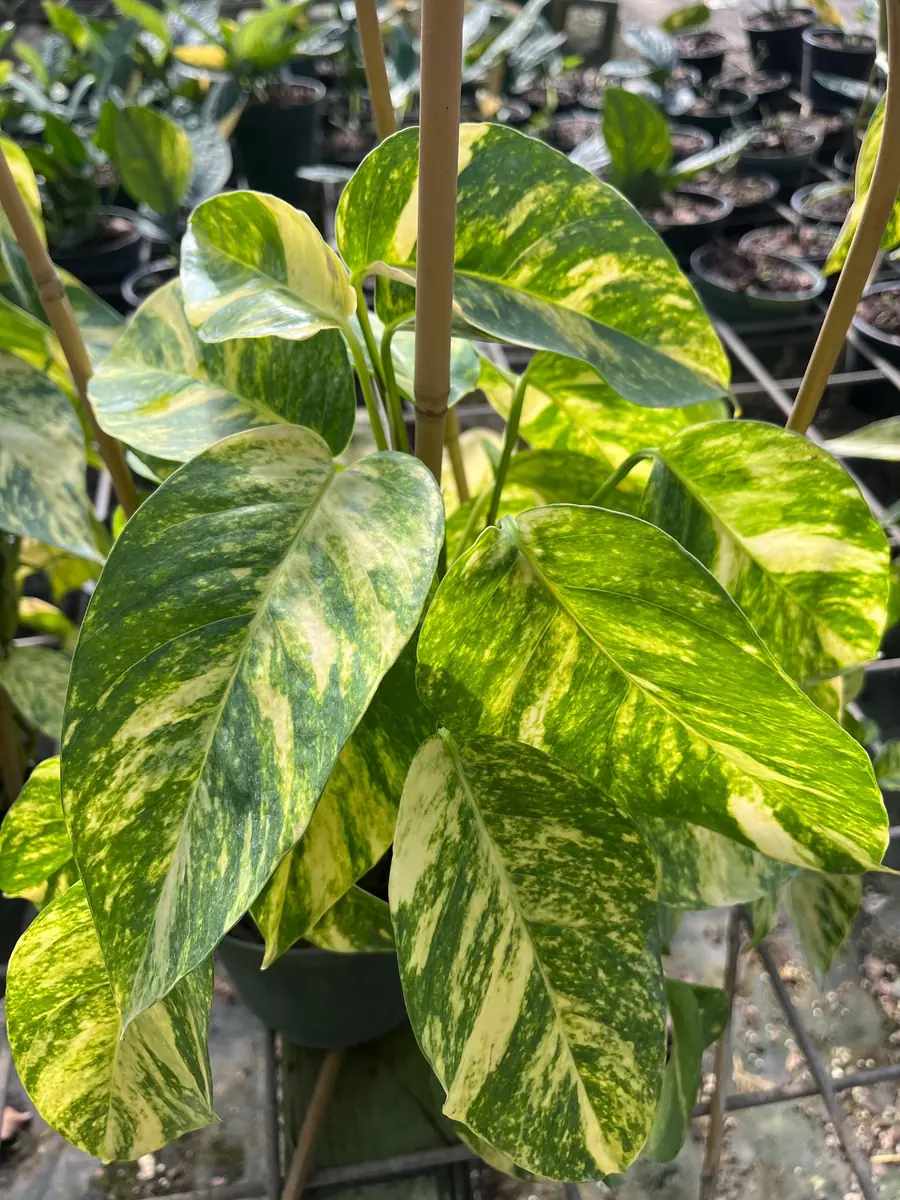 - Q: How much sunlight does it need? A: This variegated Epipremnum thrives in bright, indirect light. Avoid direct harsh sunlight, which can scorch its leaves, and ensure it receives enough light to maintain its vibrant yellow variegation.