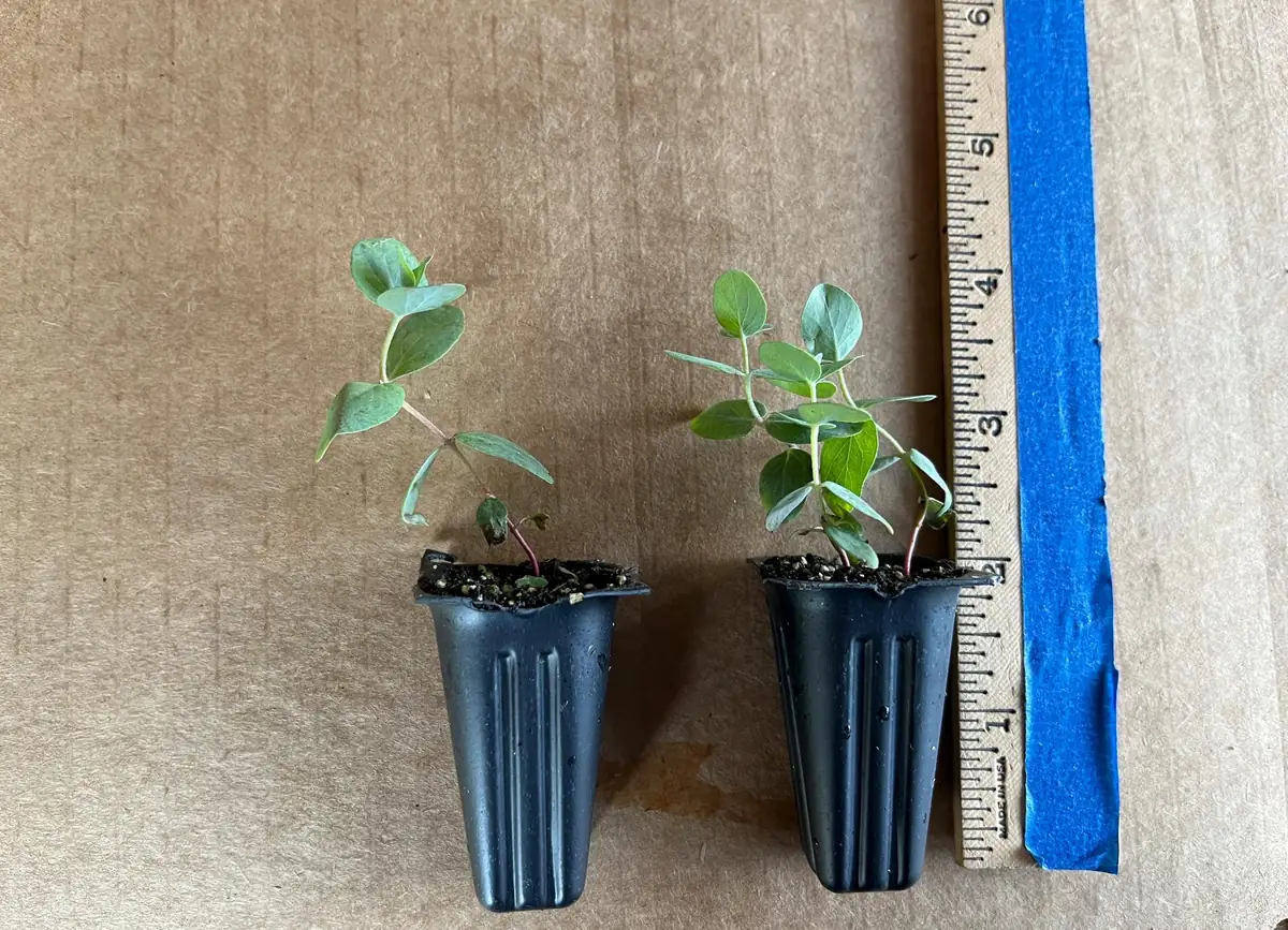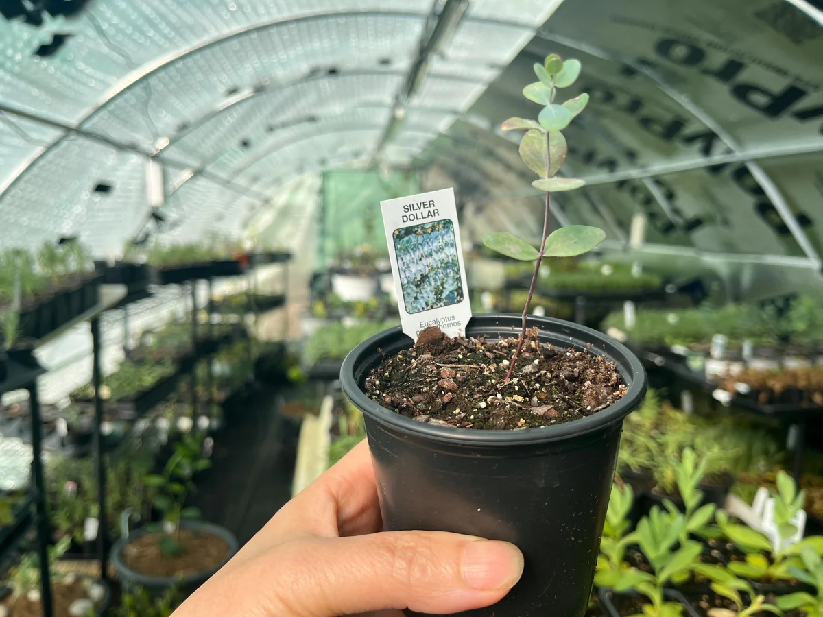 The Eucalyptus Cinerea Silver Dollar tree starter plug you receive is a small, healthy seedling, ready for transplanting. These plugs vary in size but are well-rooted and prepared to establish quickly in your chosen container or garden bed. Typically, 1 to 3 seedlings may be present in each plug, allowing you to select the strongest for continued growth. It is important not to disturb the roots excessively during transplanting, as eucalyptus plants are sensitive to root disruption.
