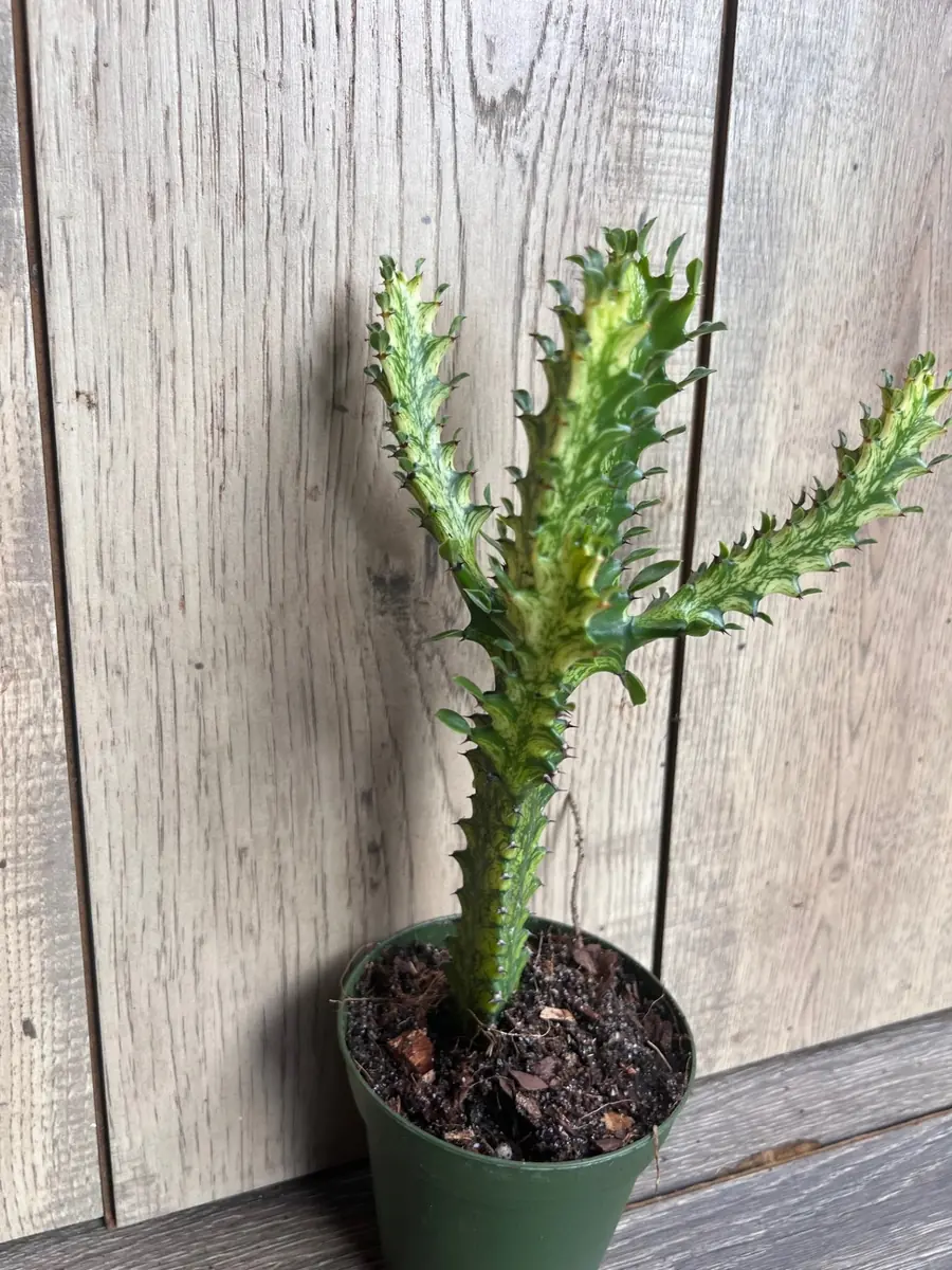 - Q: Does this plant have flowers? A: While Euphorbias can produce small, inconspicuous flowers (cyathia), the Euphorbia Lactea Variegated is primarily grown for its striking variegated stems and architectural form rather than its blooms.