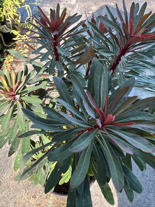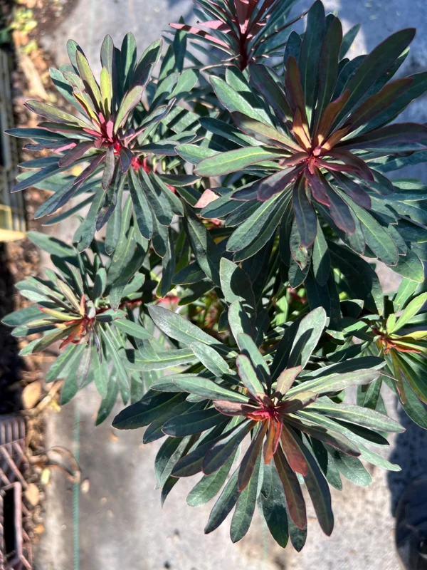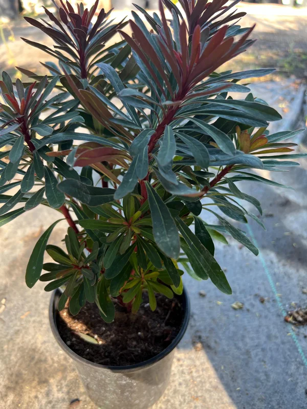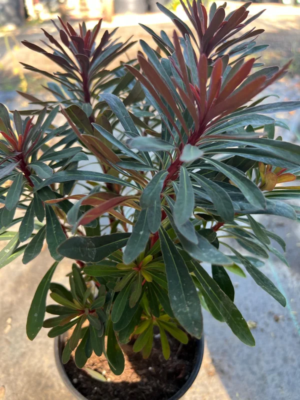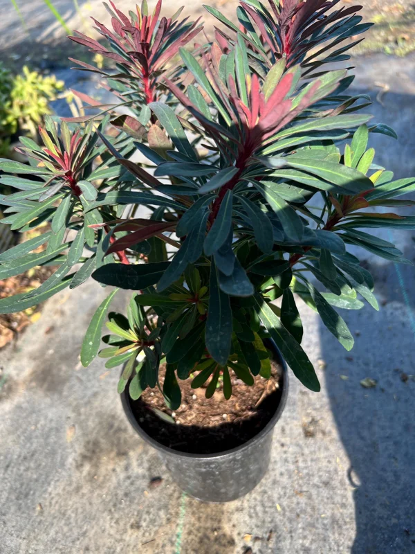 Originating from a genus known for its diverse forms, this Euphorbia variety is particularly popular for its robust nature and ornamental appeal. The ‘Miner’s Merlot’ cultivar brings a sophisticated palette to your outdoor spaces, with its deep, wine-colored new growth maturing into a beautiful green with red undertones. When it comes to garden versatility, the Euphorbia Miner’s Merlot live plant excels, adapting well to various planting schemes and offering a long season of interest.
