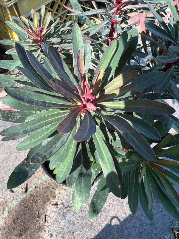 The Euphorbia Miner’s Merlot live plant is a captivating addition to any garden, known for its striking foliage and distinctive flowers. This particular variety, ‘Miner’s Merlot’, is celebrated for its rich, burgundy-tinged leaves that provide year-round visual interest, especially when contrasted with its bright, chartreuse-yellow bracts that appear in spring. As a live plant, it offers an immediate impact in your garden design, whether as a focal point, in a mixed border, or even in large containers. This resilient shrub is a fantastic choice for gardeners seeking low-maintenance beauty and unique coloration, making it a valuable asset for both novice and experienced plant enthusiasts. Its architectural form and vibrant hues ensure it stands out in any landscape.