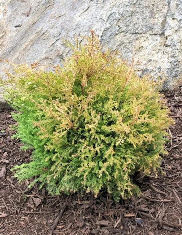 This dwarf evergreen shrub is well-suited for a variety of uses, from creating low borders and foundation plantings to serving as a striking accent in perennial beds or rock gardens. Its modest size also makes it an excellent choice for container gardening, allowing you to enjoy its beauty on patios, decks, or near entryways. The plant’s round, compact habit ensures it won’t outgrow its space quickly, providing long-lasting aesthetic appeal. With proper care, this red gold arborvitae will continue to develop its rich coloration and dense form, becoming a cherished element of your garden for years to come.