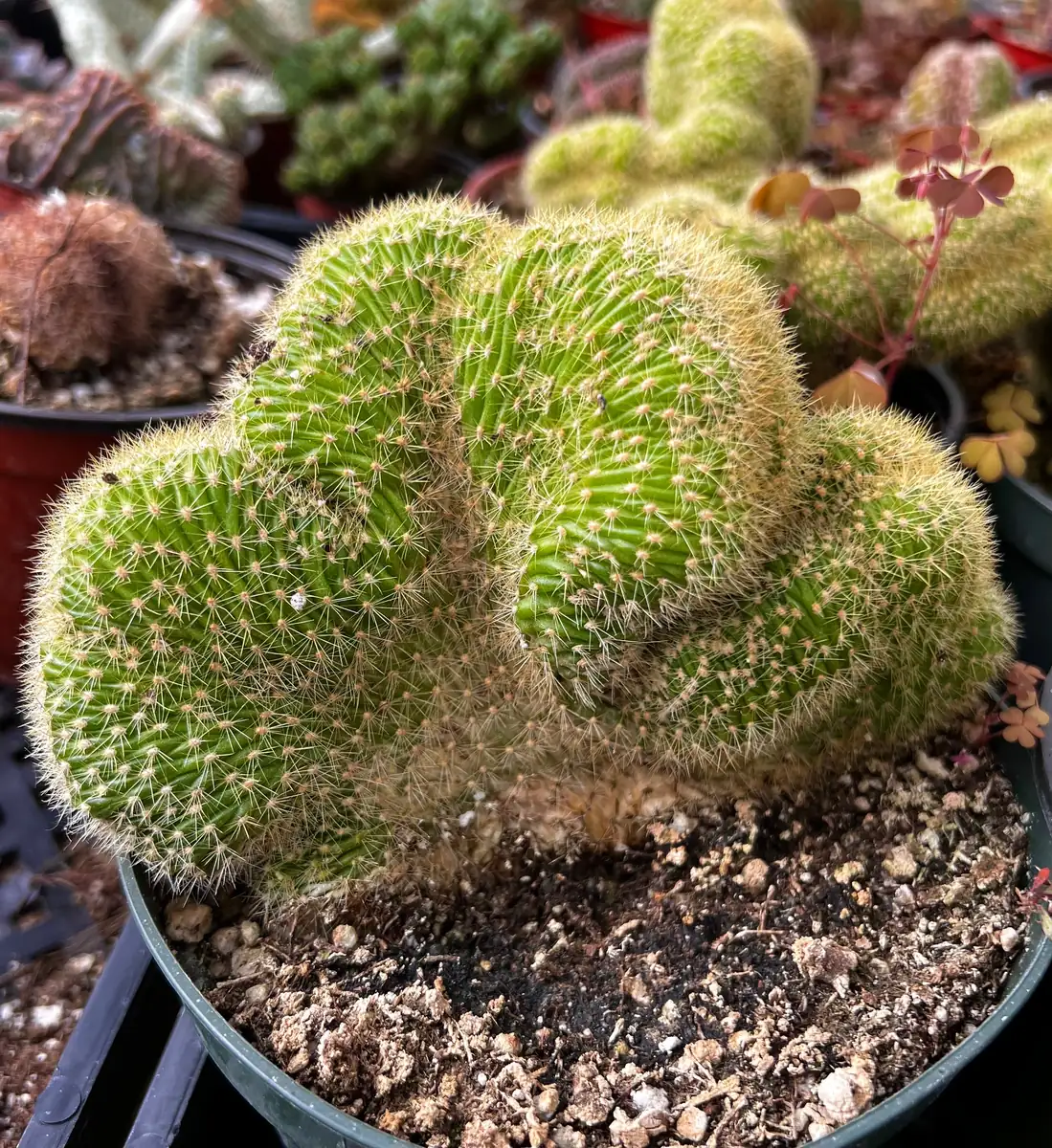 Sunlight Requirements: This crested cactus for sale thrives in filtered bright light, partial sun, or light shade. While it enjoys plenty of light, avoid placing it in full, harsh sun, especially during the hottest parts of the day, as this can lead to sunburn and damage its delicate crested stems. An east or west-facing window indoors that receives gentle morning or late afternoon sun is often ideal. If growing outdoors, choose a spot with some protection from intense midday rays.