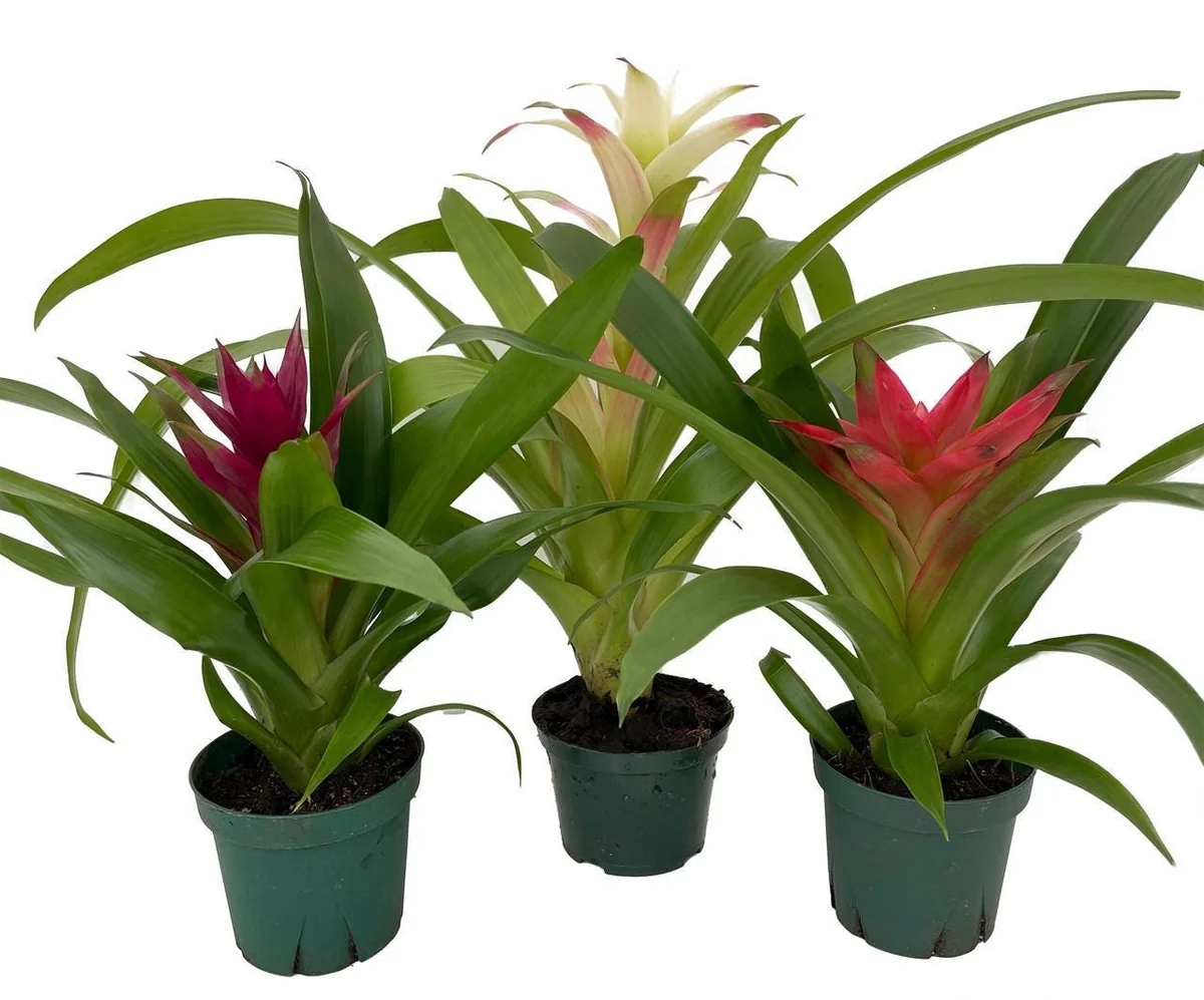 - Q: Can I repot these plants into larger containers? A: Guzmanias have shallow root systems and do not require frequent repotting. You can keep them in their 4-inch pots or move them to a slightly larger decorative container if desired, ensuring good drainage.
