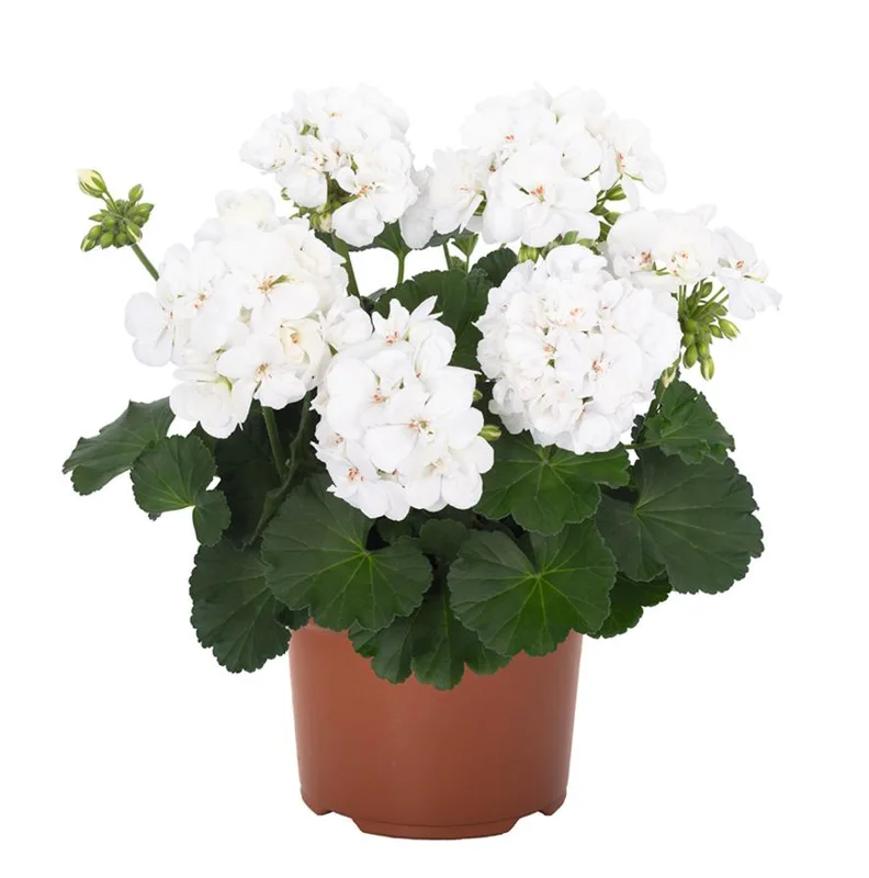 Fertilization: Feed your geraniums with a balanced liquid fertilizer every 2-4 weeks during their active growing and blooming season (spring through fall). Follow the product instructions for dilution rates. Reduce or stop fertilization during winter months if grown as perennials indoors. A healthy feeding regimen will support the continuous production of the beautiful white flowers that make this plant so desirable.