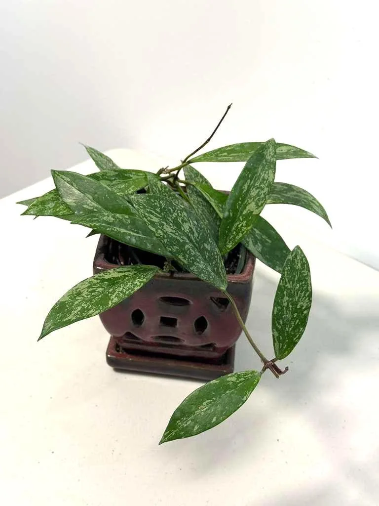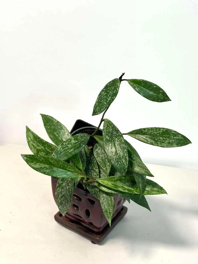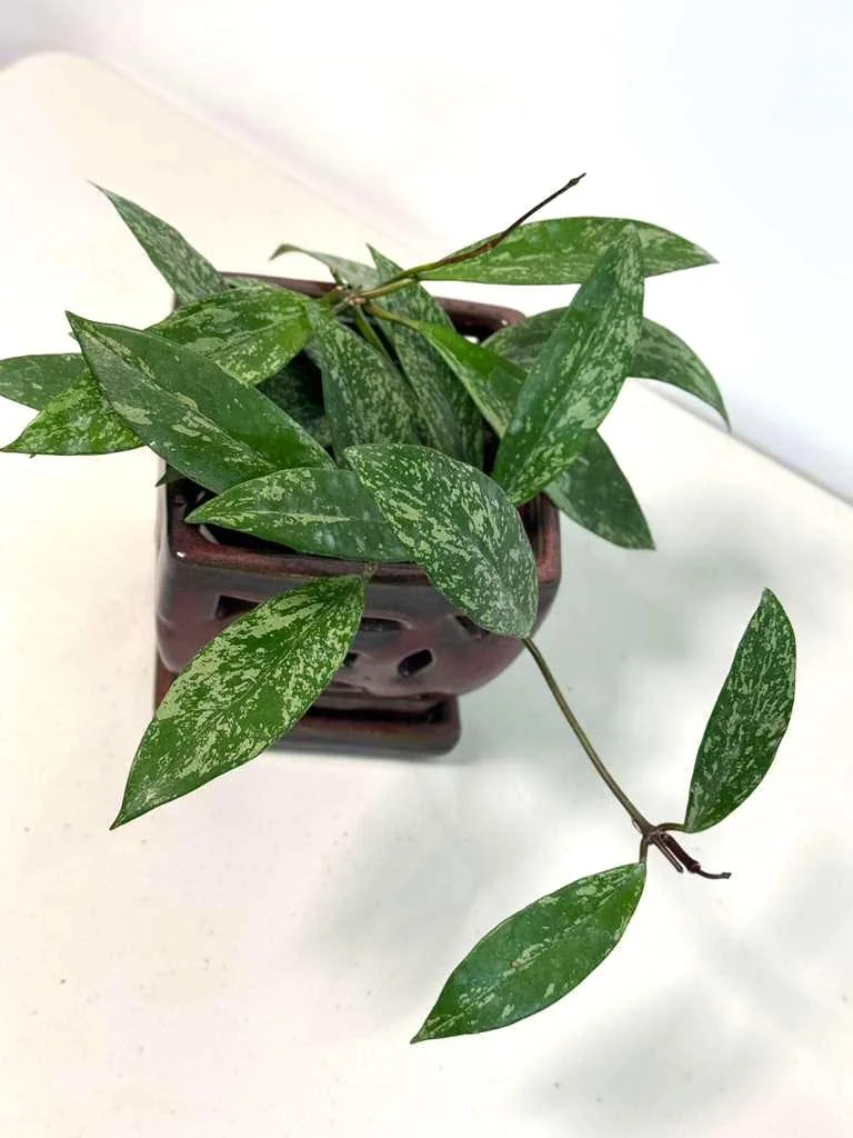 Temperature & Humidity: This tropical plant prefers warm temperatures, ideally between 65-80°F (18-27°C). Protect it from cold drafts and temperatures below 50°F (10°C), which can stress the plant. Moderate to high humidity is appreciated, though Hoyas are quite tolerant of average household humidity levels. You can increase humidity by misting occasionally, placing the pot on a pebble tray with water, or using a humidifier, especially in dry environments. This silver splash Hoya plant will thrive with consistent care.