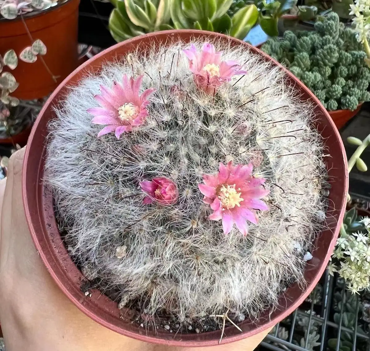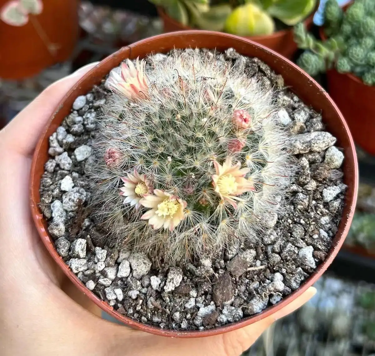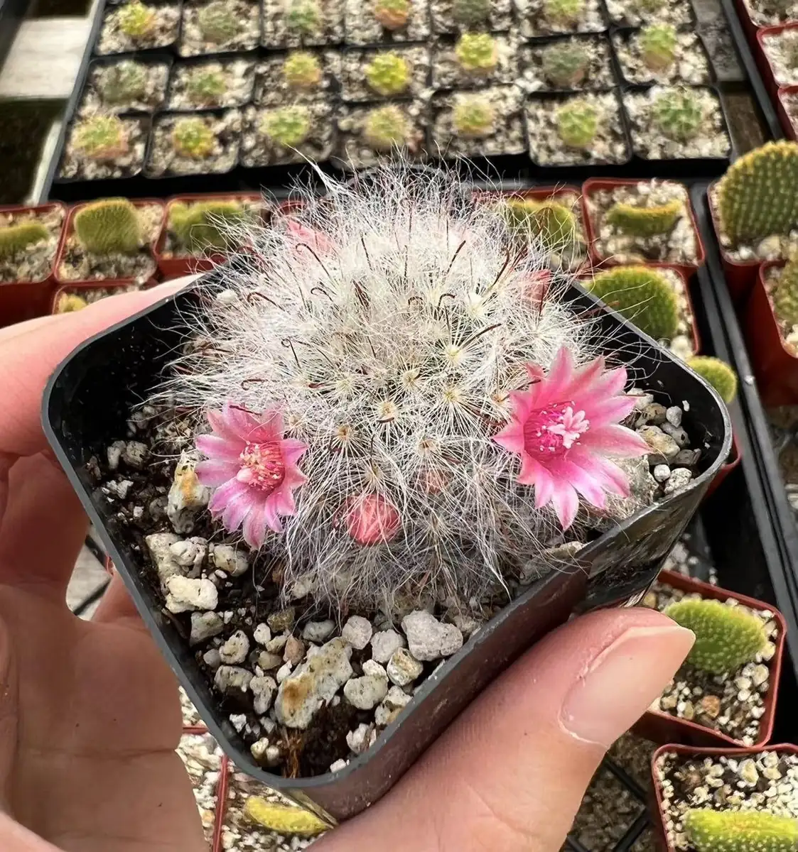 Q: How long until it blooms? A: The mammillaria schwarzii cactus typically produces its small pink flowers in the spring, provided it receives adequate sunlight and proper care during its growing season.