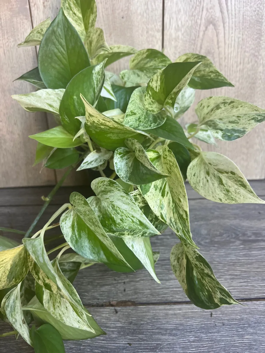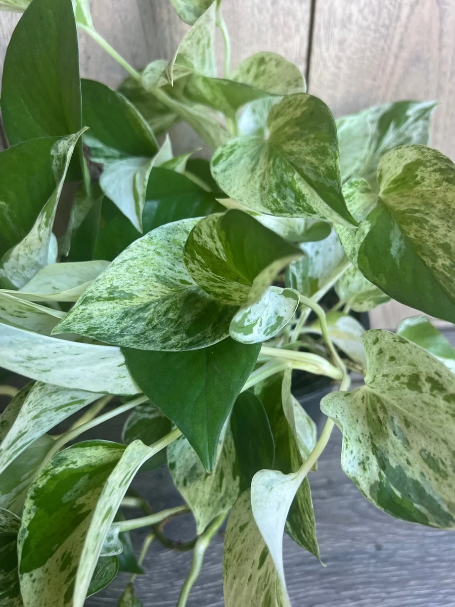 Introduce a touch of sophisticated greenery to your living space with this exquisite Marble Queen Pothos live plant. Known for its stunning white and green variegated foliage, the Marble Queen Pothos (Epipremnum aureum ‘Marble Queen’) is a highly sought-after houseplant that brings a vibrant, almost painted look to any room. Each leaf features a unique pattern, reminiscent of monochromatic stained glass, making every plant a living piece of art. This particular specimen comes in a 6 inch pot, ready to thrive and cascade beautifully in your home or office. As one of the easiest indoor plants to care for, the Marble Queen Pothos live plant is perfect for both seasoned plant enthusiasts and those new to the world of houseplants, offering lush beauty with minimal effort.