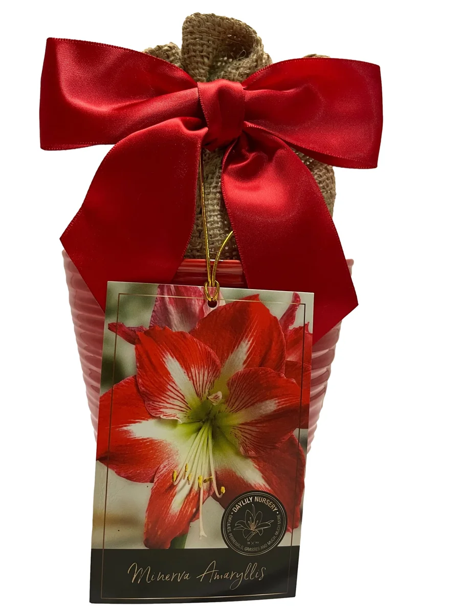 - Complete Kit: Everything you need is included: a premium Minerva Amaryllis bulb, a beautiful red ceramic pot, professional growing medium, and a decorative burlap gift bag. No extra purchases are necessary to get started.