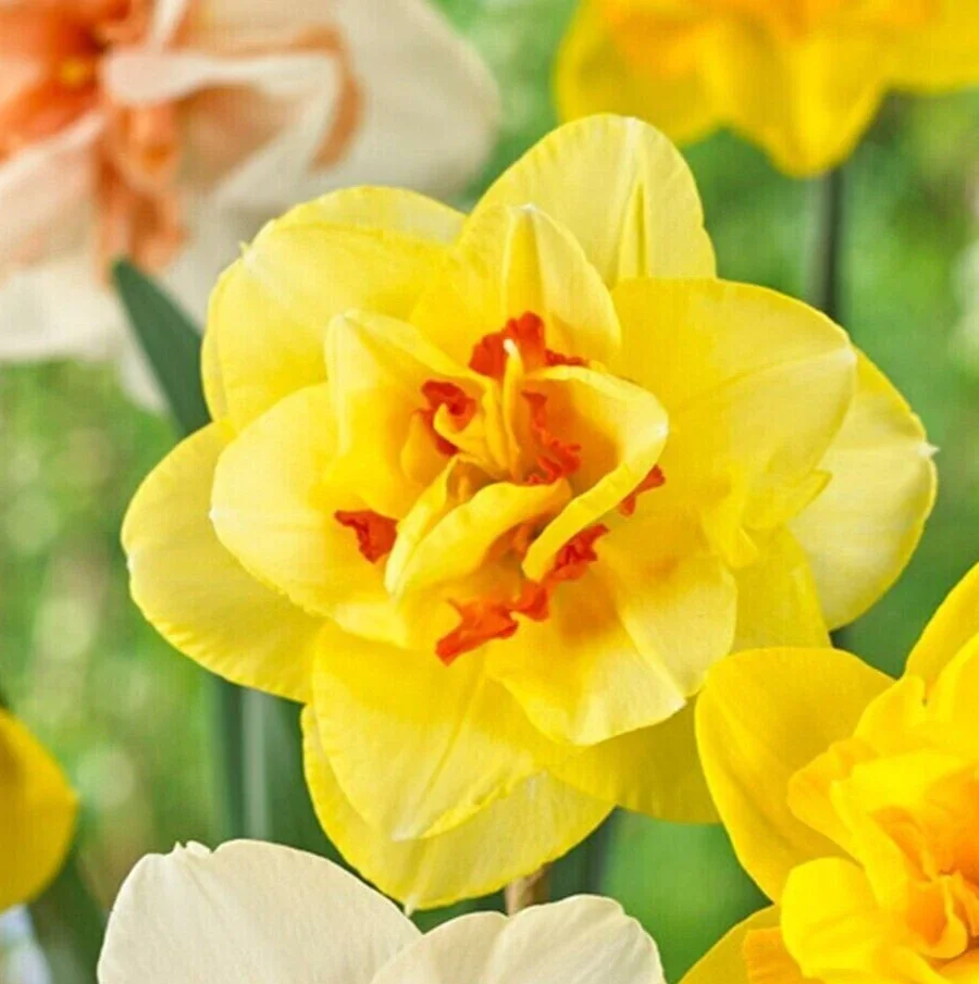 - Spectacular Double Blooms: Unlike single daffodils, these bulbs produce flowers with multiple layers of petals, creating a fuller, more luxurious, and visually captivating appearance.