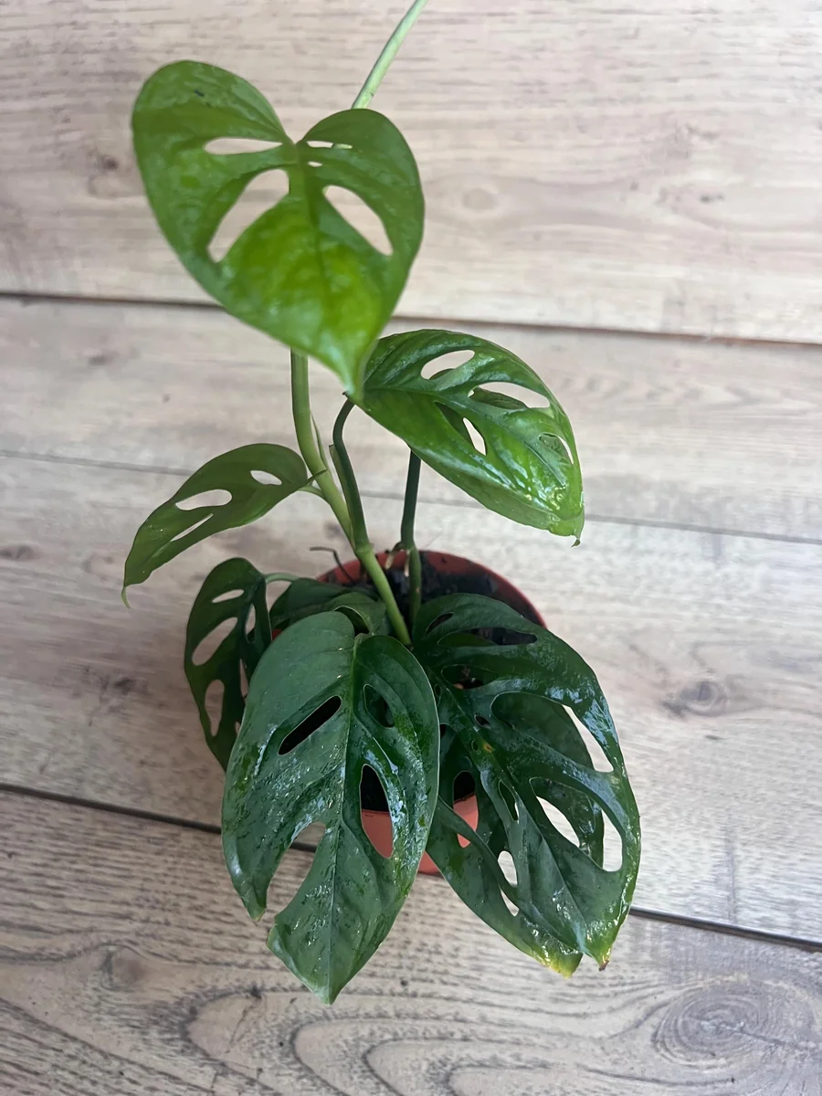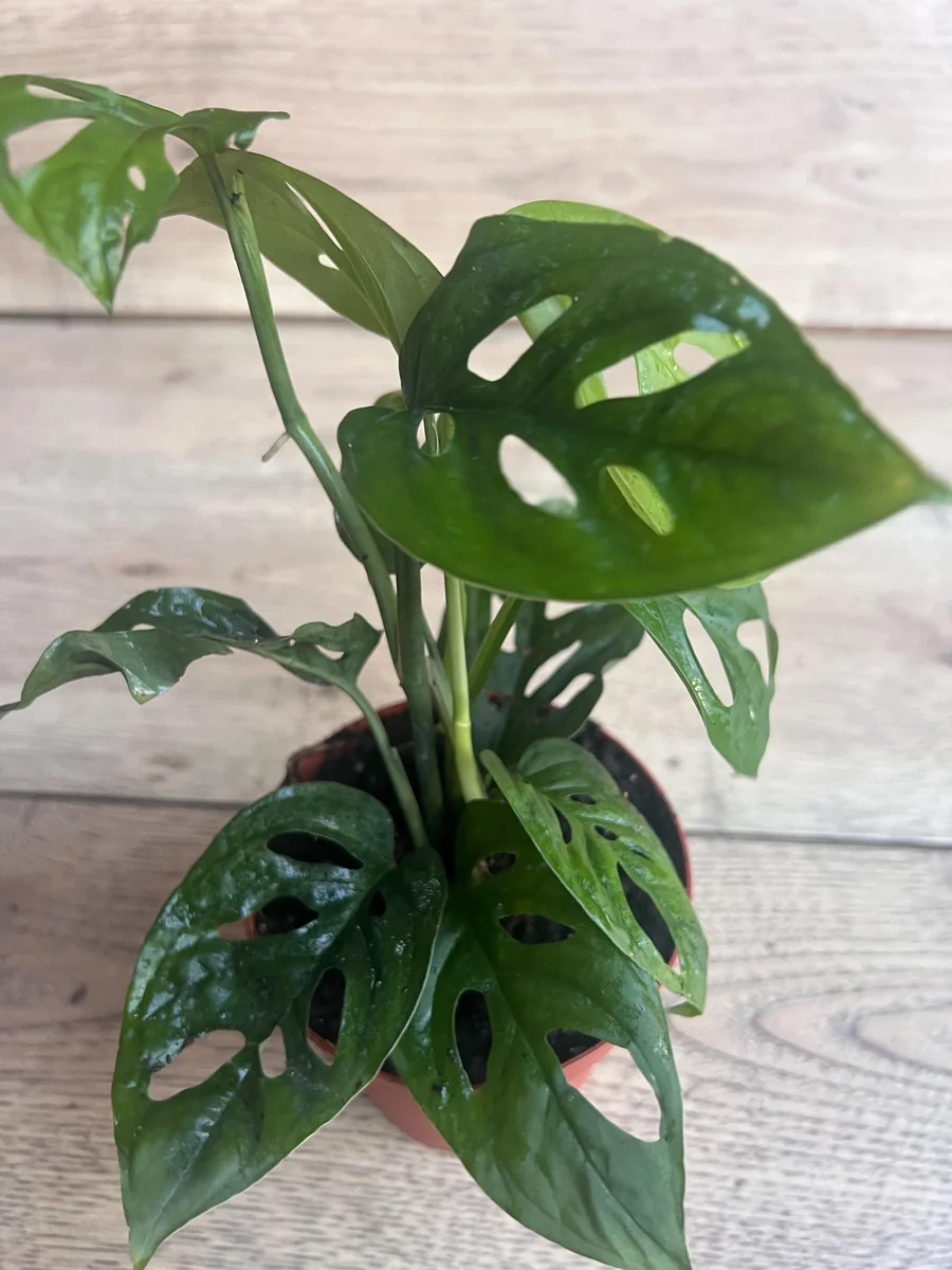 Q: Does this Monstera Esqueleto need high humidity? A: Yes, high humidity (60-80%) is very beneficial for the Monstera Esqueleto. It helps the leaves unfurl correctly and encourages the development of large, dramatic fenestrations. Consider a humidifier or pebble tray.