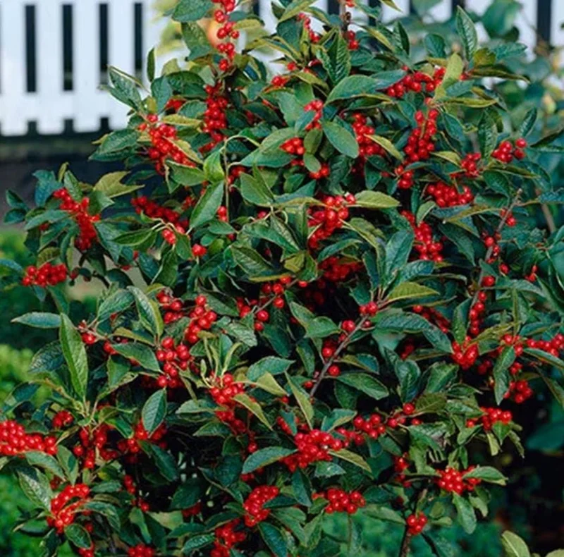 The plant’s deep green foliage is a consistent feature year-round, complemented by bright red berries that appear in the winter, adding seasonal interest. The USDA Hardiness Zones for this plant are 6–9, indicating its suitability for a wide range of climates across the United States. These plants are shipped as live seedlings and may appear dormant or without leaves if purchased during colder months; this is completely normal and does not affect their health or future growth. Expect these plants to establish well and begin their impressive growth quickly once planted in their permanent location.