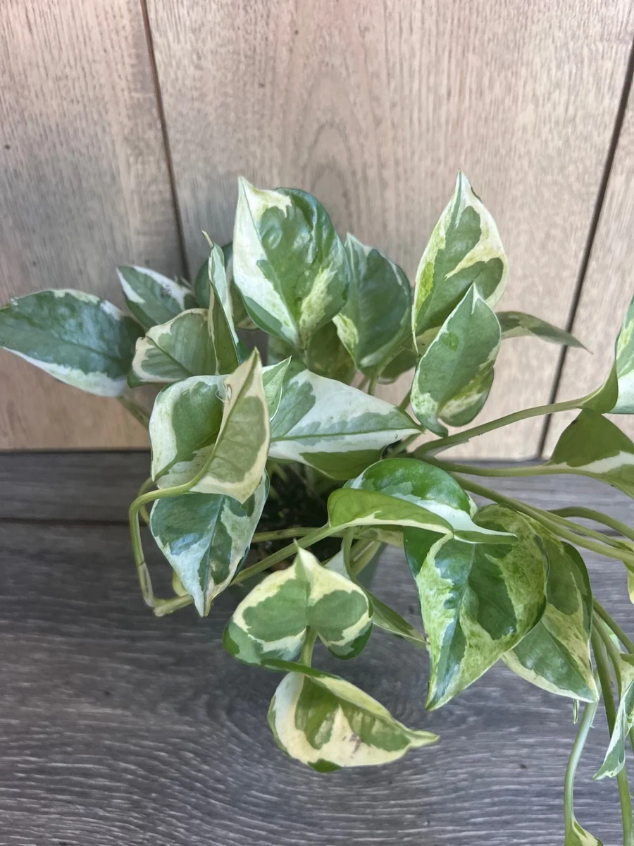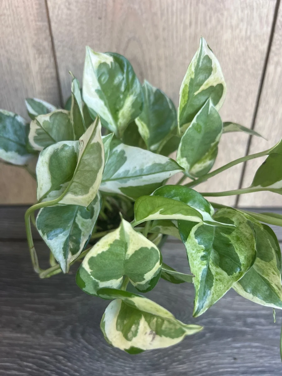 The leaves of the N’Joy Pothos live plant display a captivating variegation of deep green and creamy white, creating a visually striking contrast that brightens any indoor space. This unique coloration makes it stand out from other Pothos varieties and adds an elegant touch to your decor.