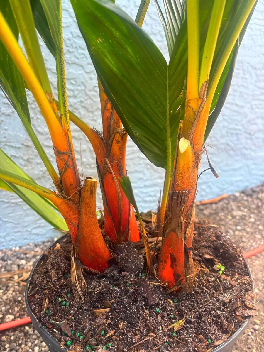 The ideal temperature range for the orange crownshaft palm live plant is between 65-85°F (18-29°C). It is not tolerant of cold temperatures and should be protected from drafts and temperatures below 50°F (10°C). While specific USDA hardiness zones are not always applicable for indoor plants, if grown outdoors, it is best suited for tropical or subtropical climates, typically USDA Zones 10-11. A well-draining, rich potting mix is crucial for healthy growth. A mix formulated for palms or a general-purpose potting mix amended with perlite or orchid bark will suffice. Fertilize sparingly during the growing season (spring and summer) with a balanced liquid fertilizer diluted to half strength. This red crownshaft palm is generally pest-resistant, but keep an eye out for common houseplant pests like spider mites or mealybugs, and treat promptly if observed. Its slow growth means minimal pruning is required, usually just removing any yellowing or dead fronds to maintain its aesthetic appeal and promote new growth.